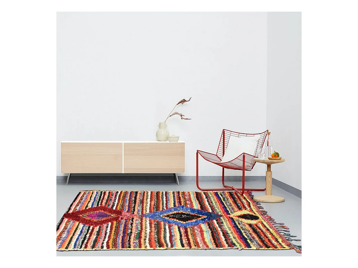 Authentique tapis berbère 135x250 fait main en tissu recyclé multicolore ERFOUD 11