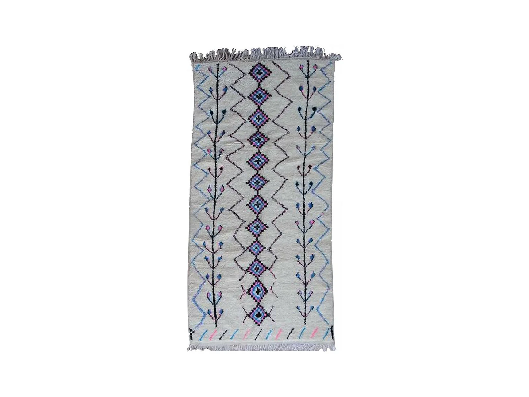 Authentique tapis berbère 145x280 fait main en laine gris et bleu RABAT