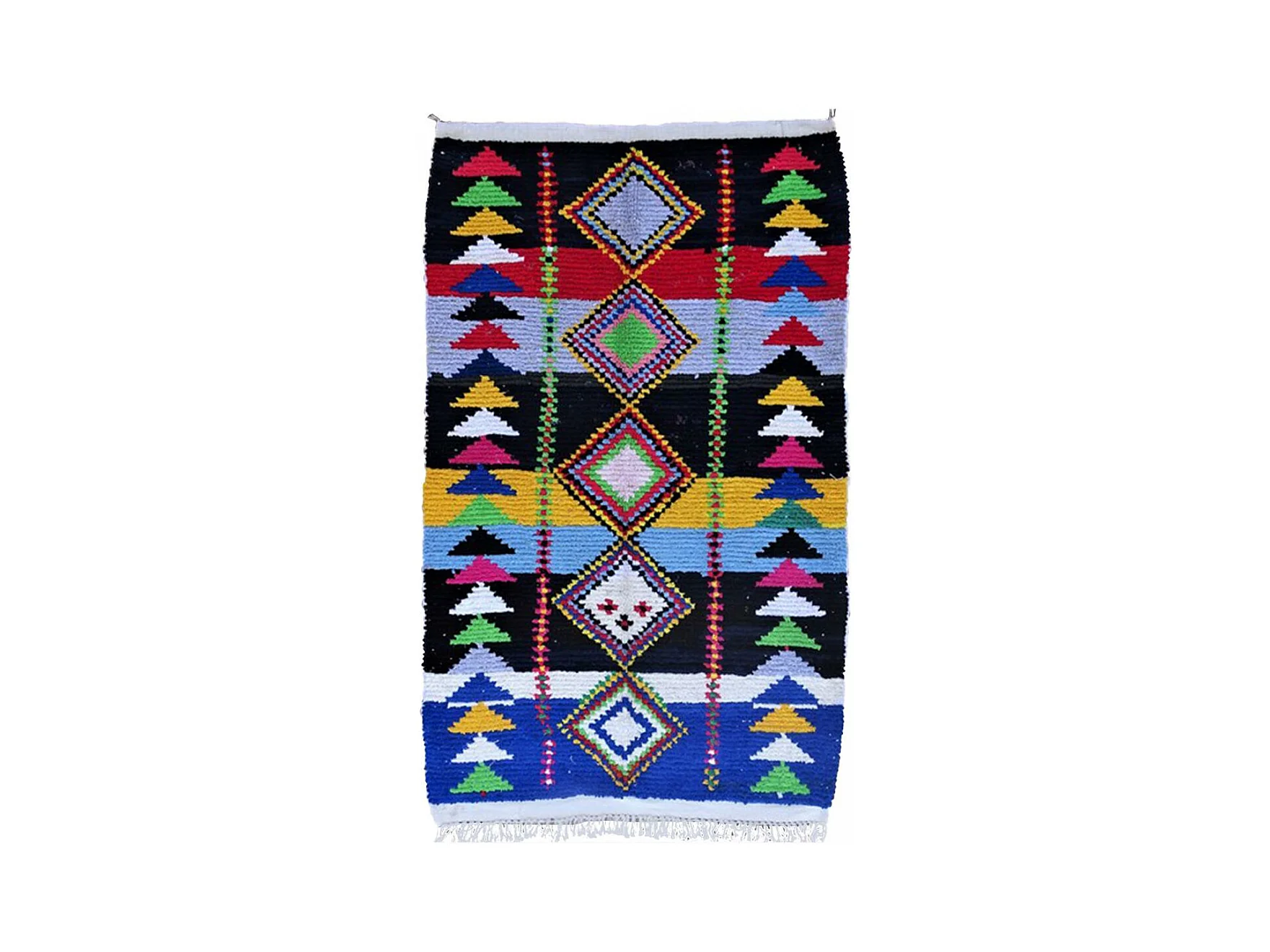 Authentique tapis berbère 150x240 fait à la main en coton bleu et jaune BOUCHAROUETTE AG