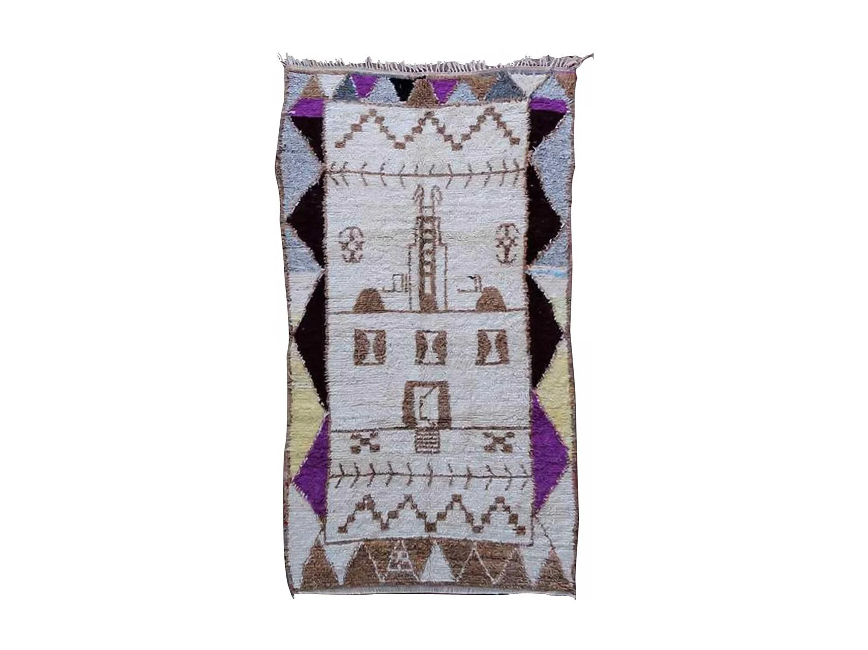 Authentique tapis berbère 150x265 fait main en laine crème ZEMERE