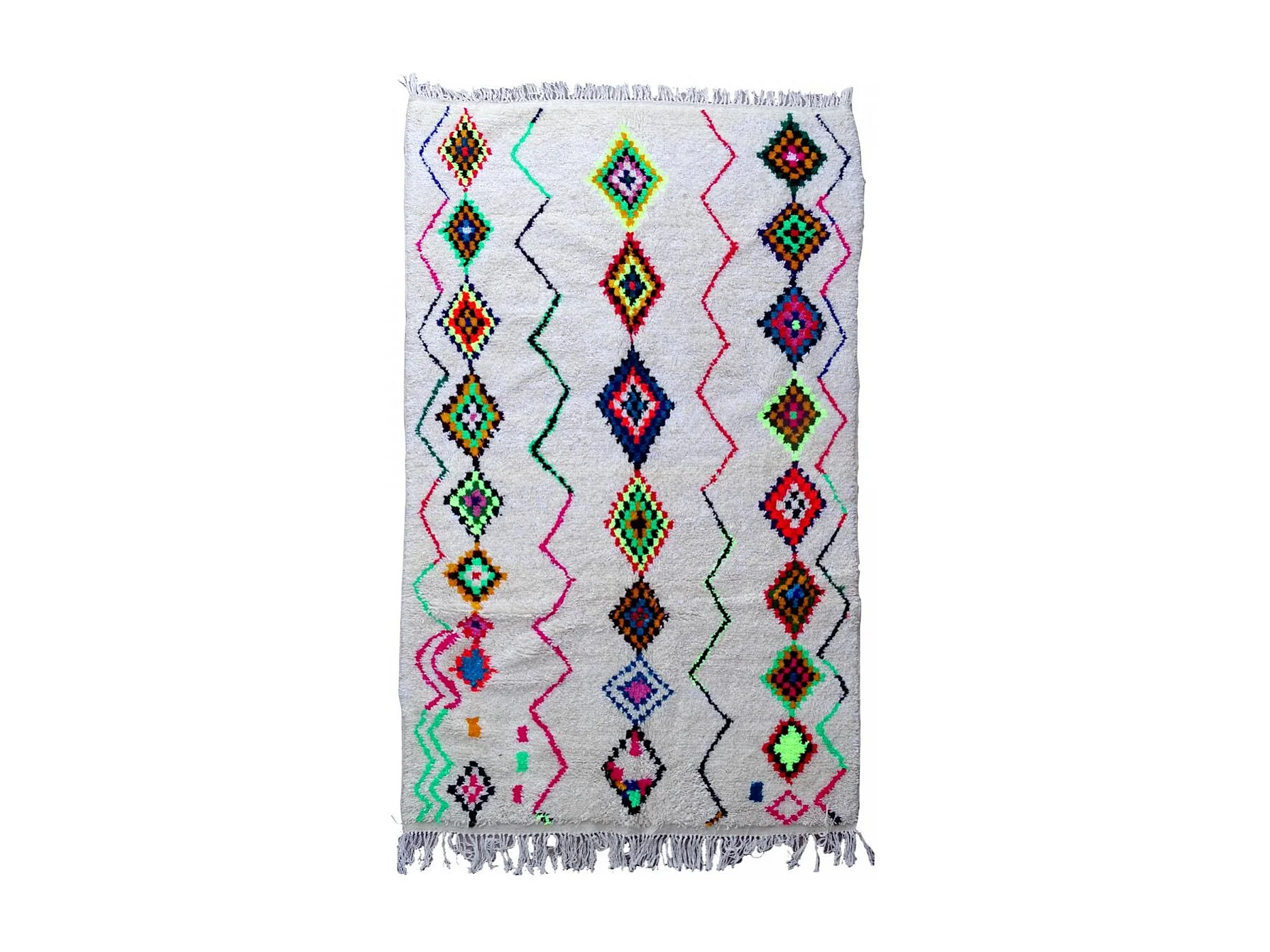 Authentique tapis berbère 160x255 fait à la main en laine blanc cassé et rose AZILAL 6 motif ethnic