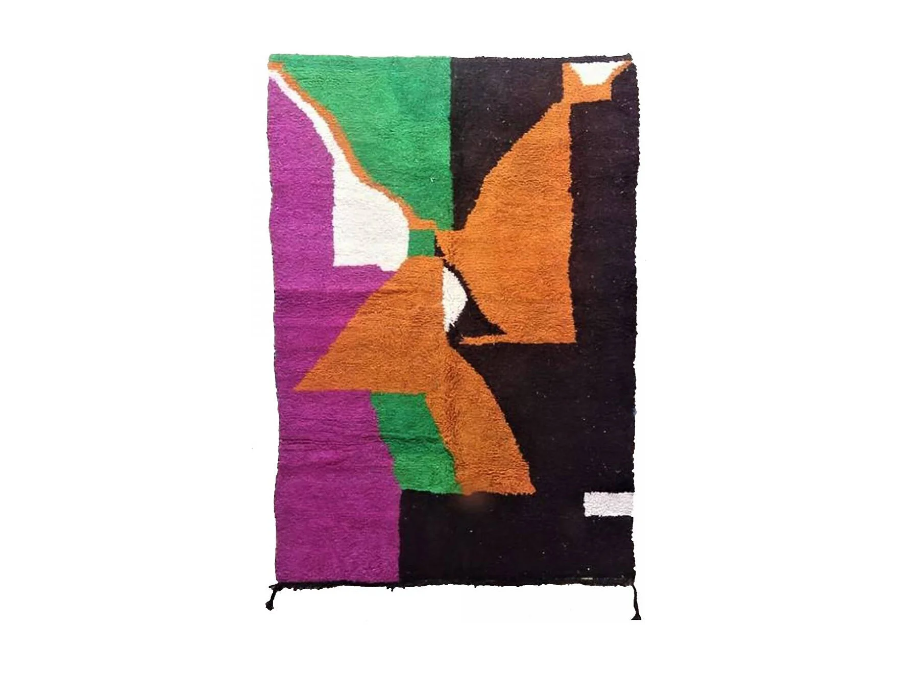 Authentique tapis berbère 195x285 fait main en laine noir et orange ZAOULAN