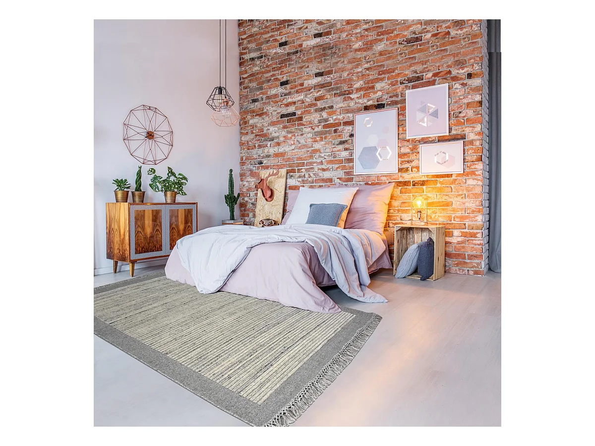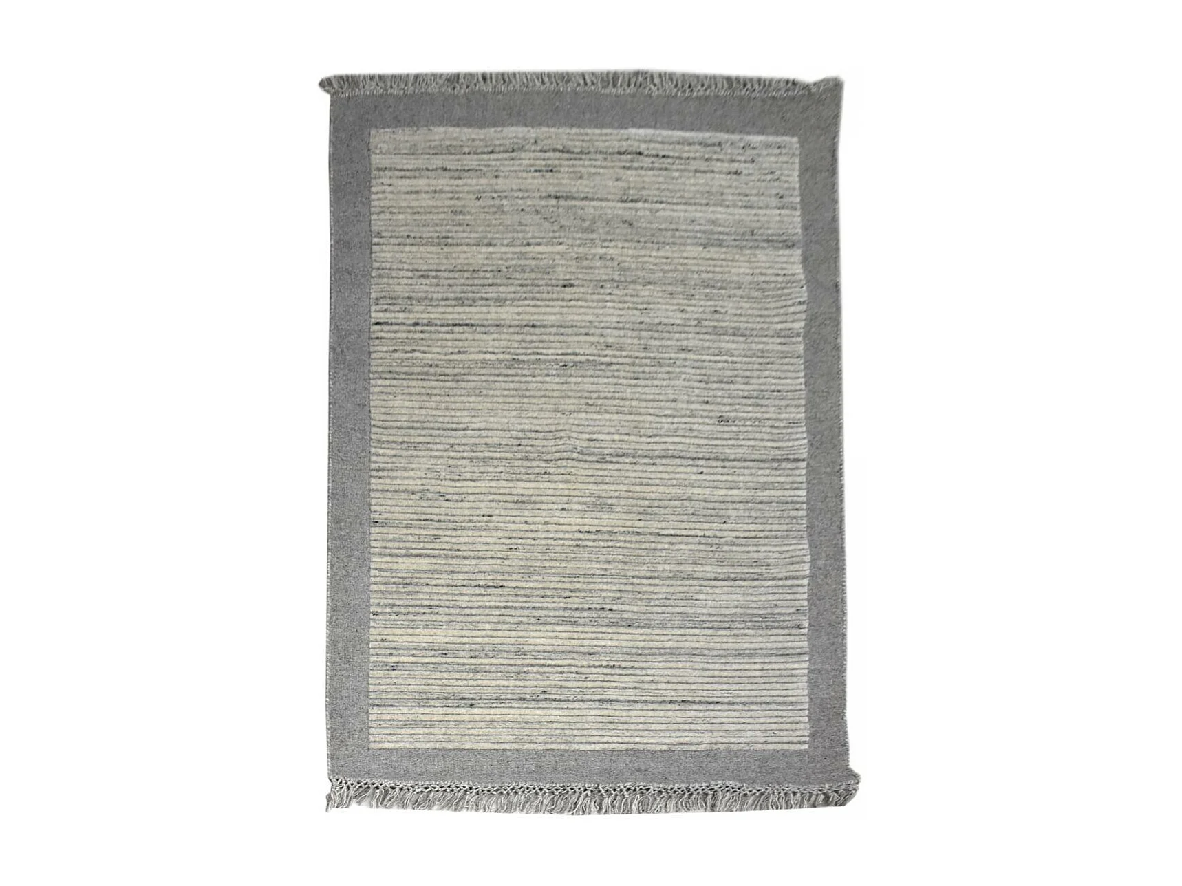 Authentique tapis berbère 200x290 fait à la main en laine gris et beige LOUNALI