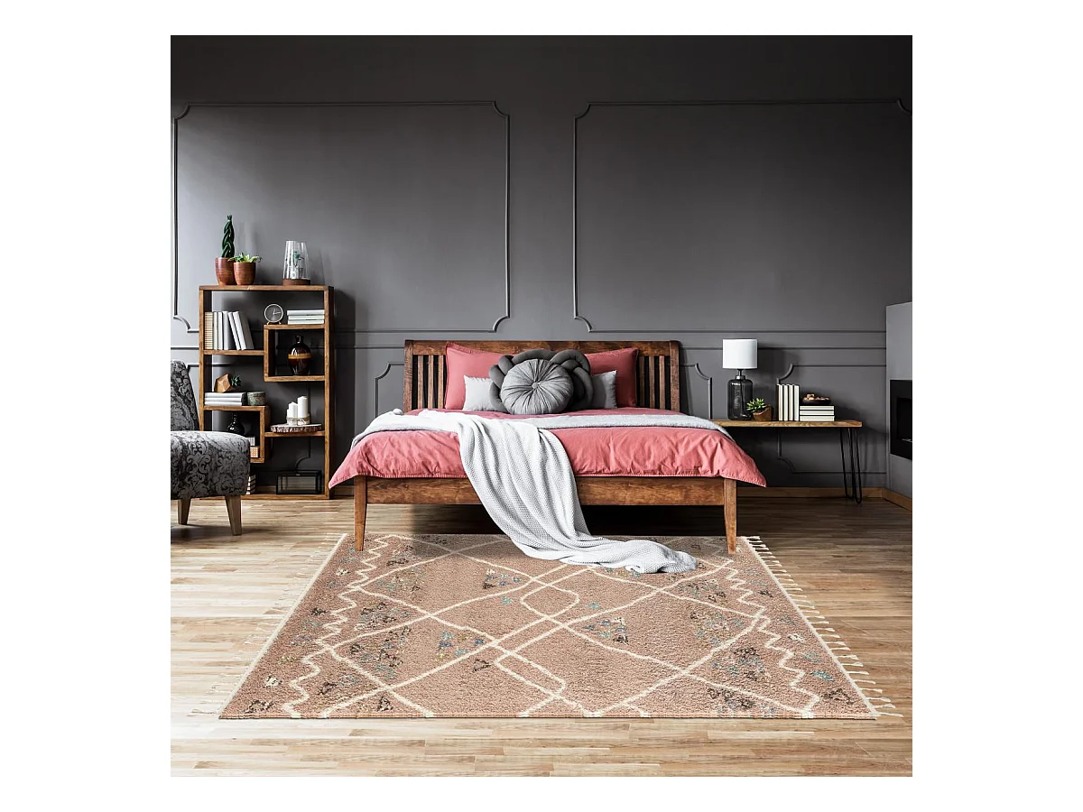 Tapis berbère 200x290 tissé motif saharien PASTEL D rose