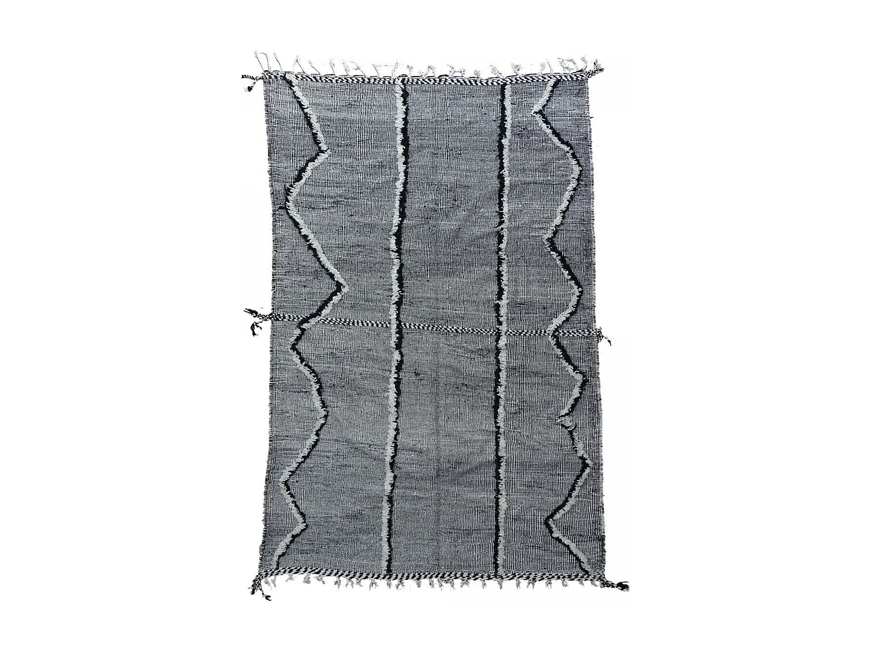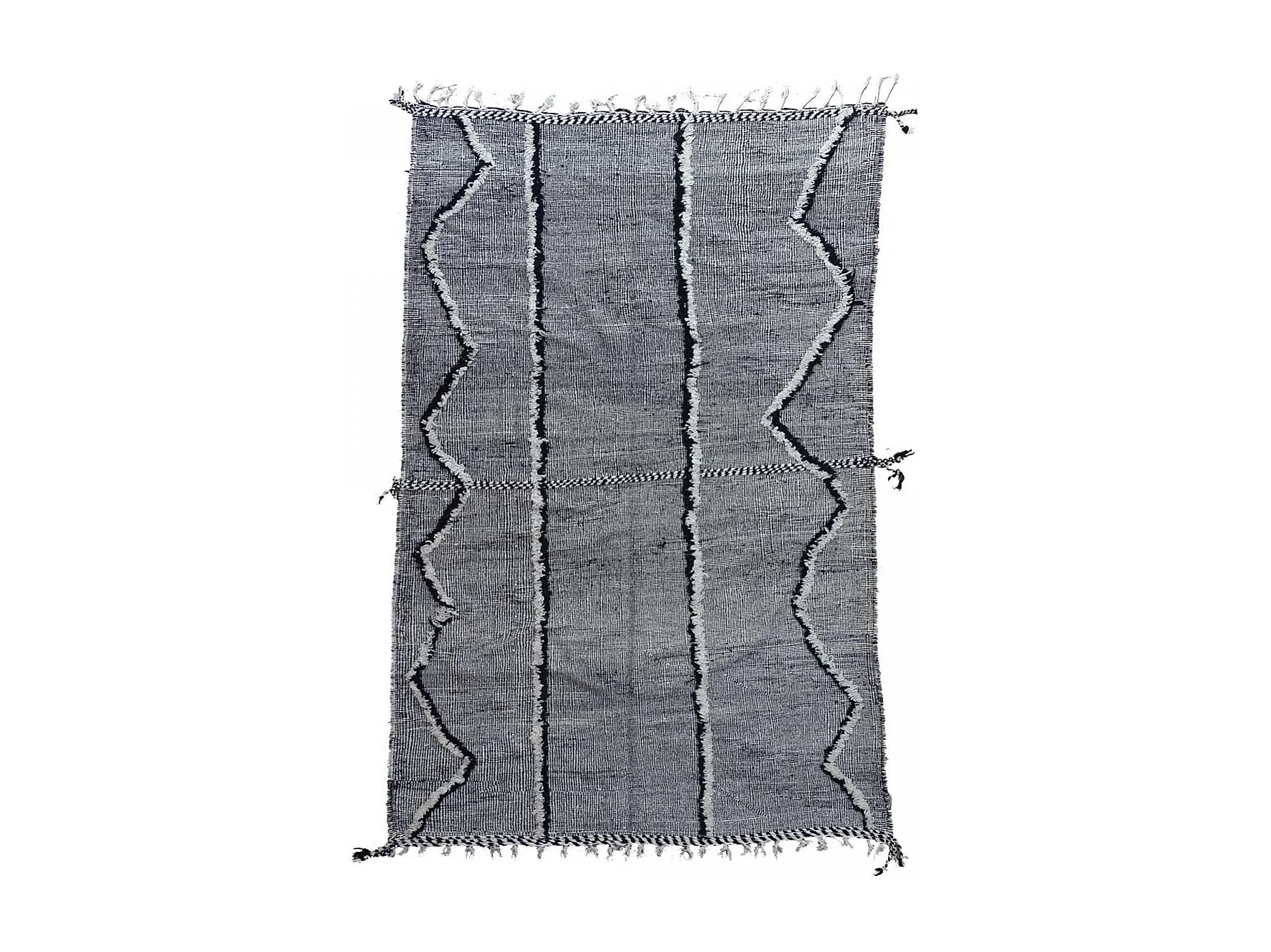 Authentique tapis berbère 205x310 fait main en laine gris et noir AKKA