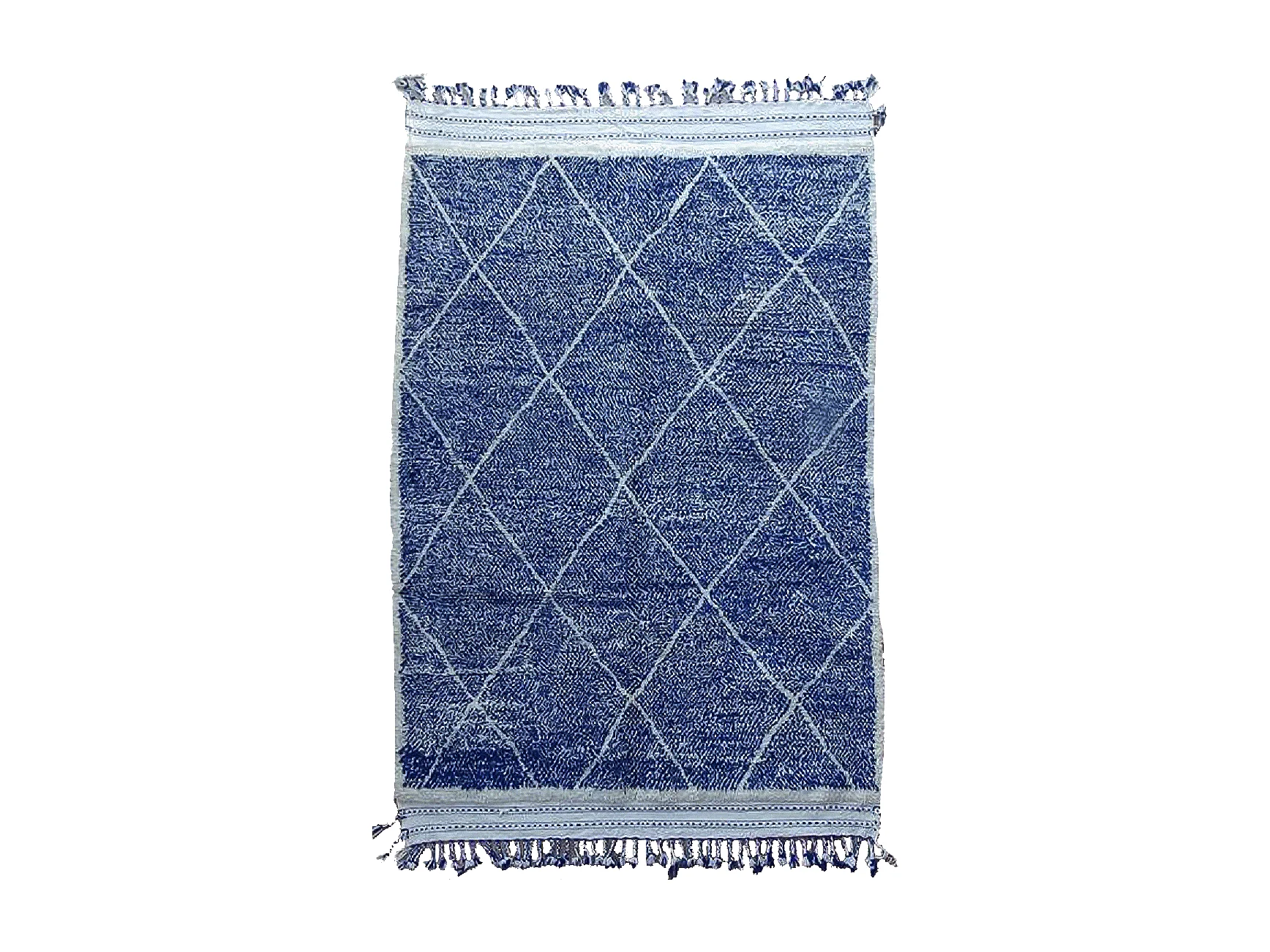 Authentique tapis berbère 205x310 fait main en laine bleu et blanc INLES