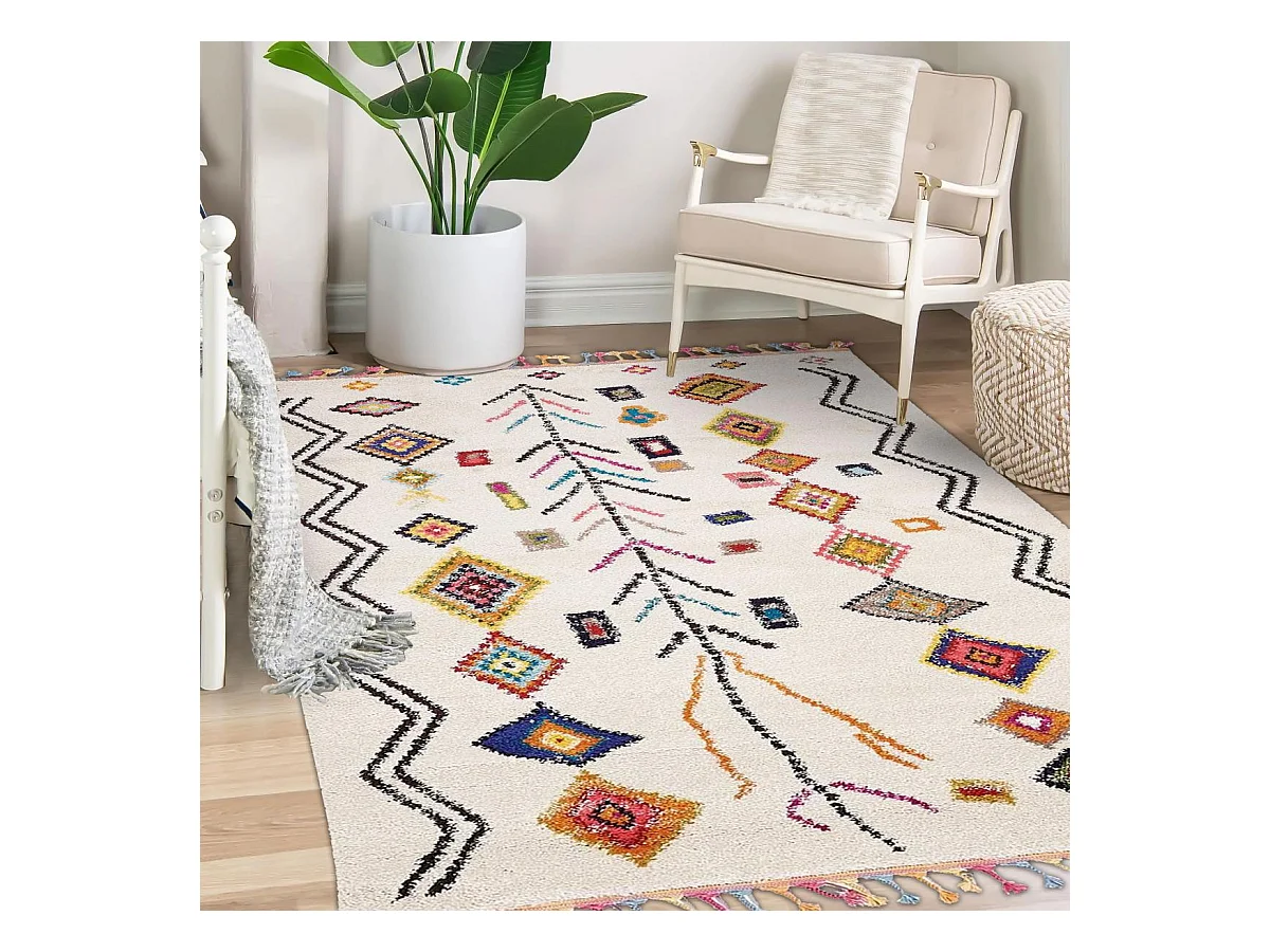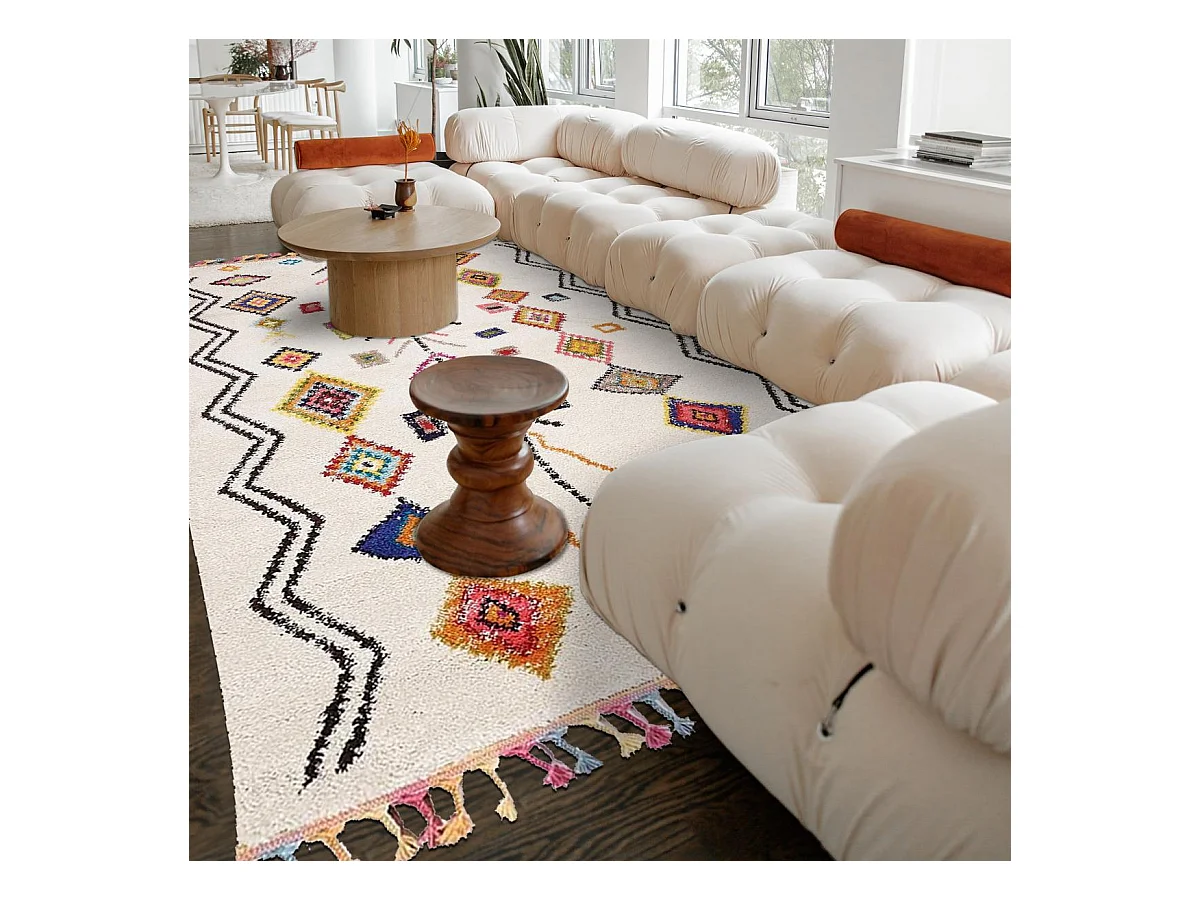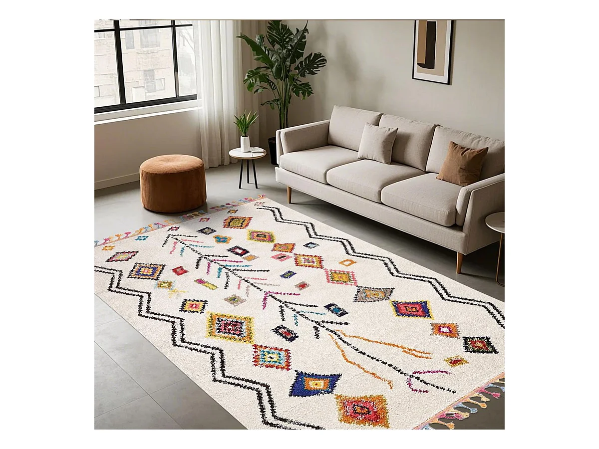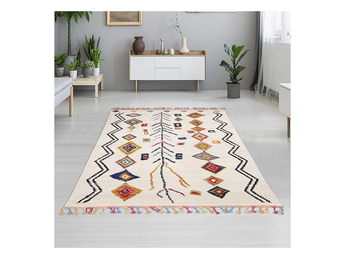 Tapis berbère 240x340 tissé motif ethnic LYN5 OURIKA ivoire