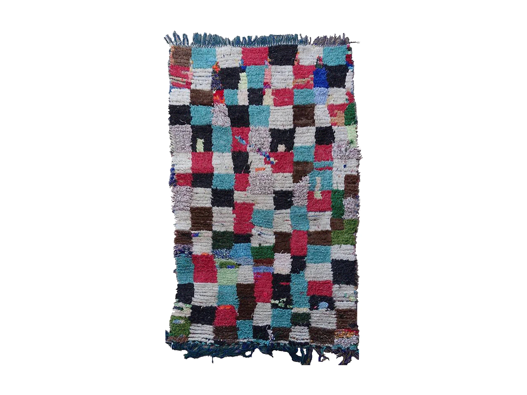 Authentique tapis berbère 90x150 fait main en laine bleu et noir ZEMERI