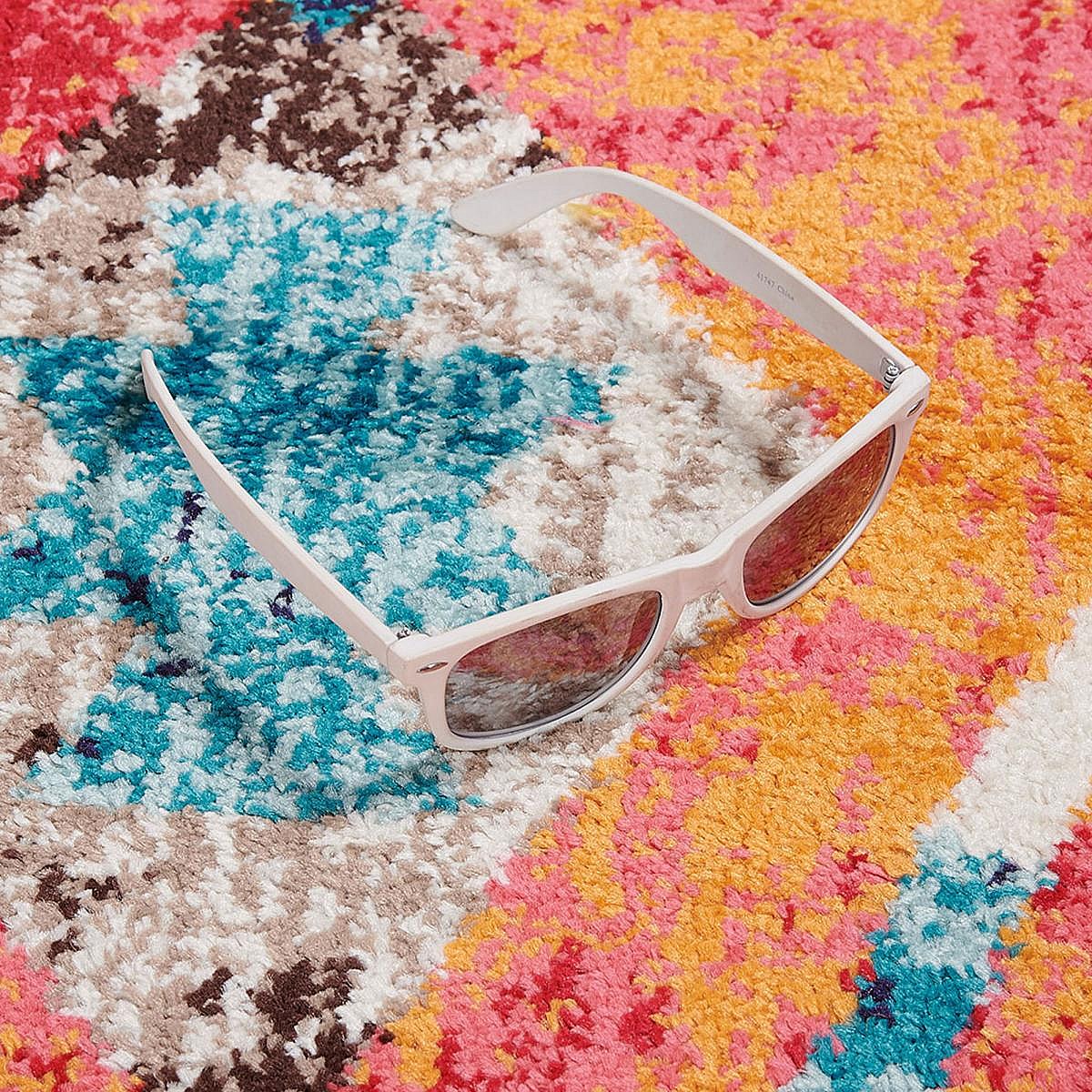 Tapis berbère carré 100X100 tissé motifs tribaux LYN5 OURIKA bleu et jaune
