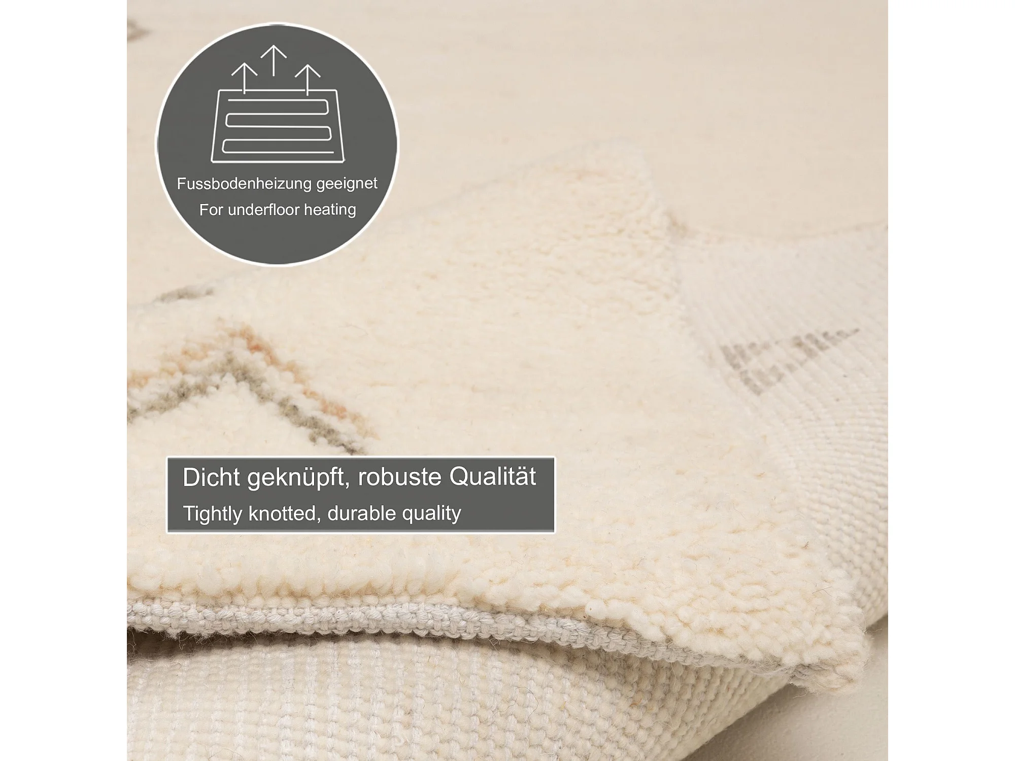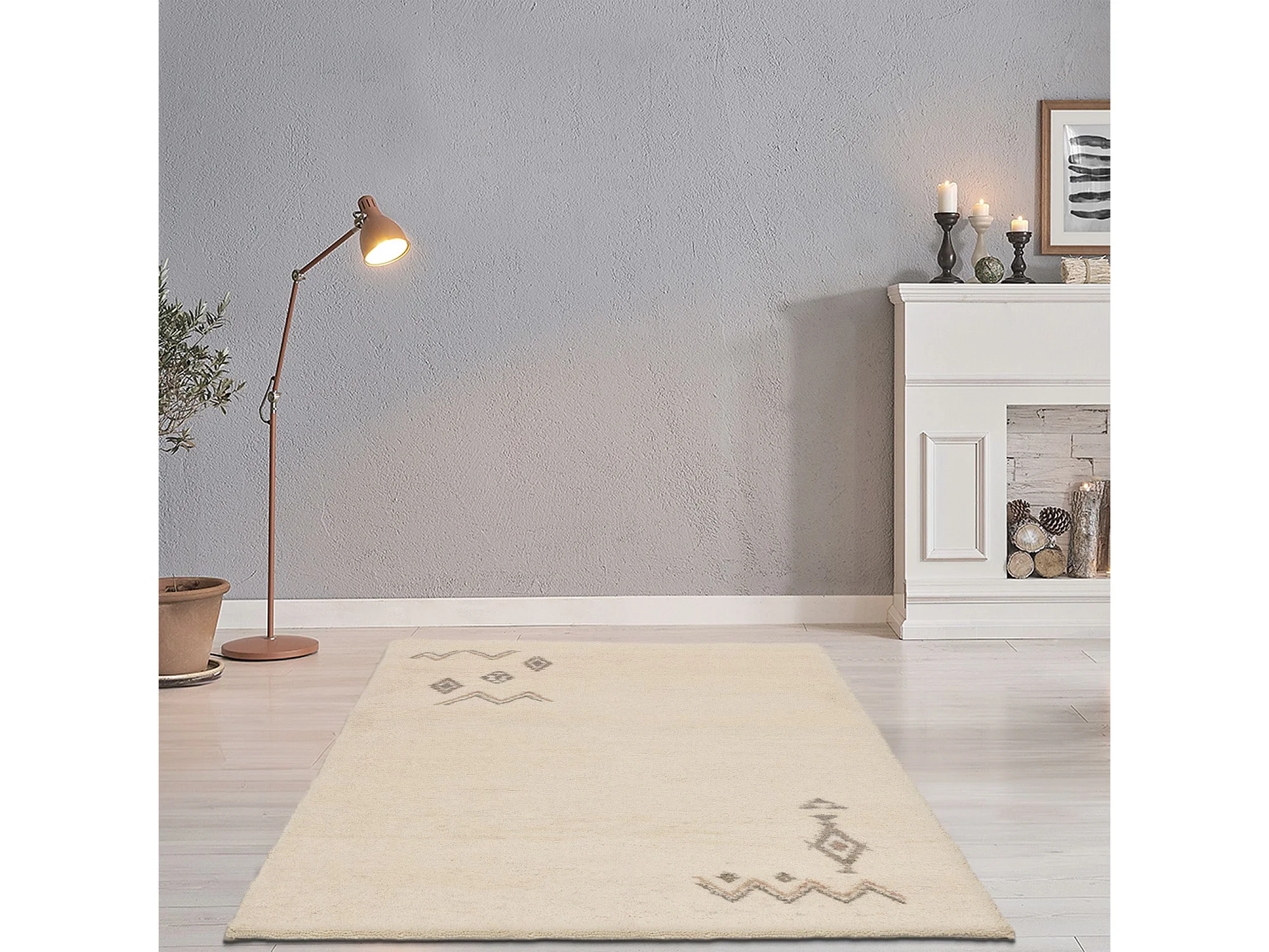 Tapis berbère noué à la main en laine 200x300 cm blanc Hadj