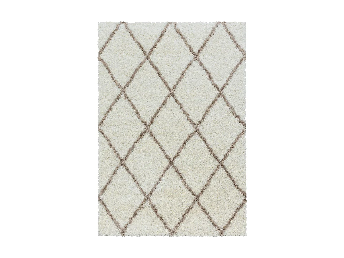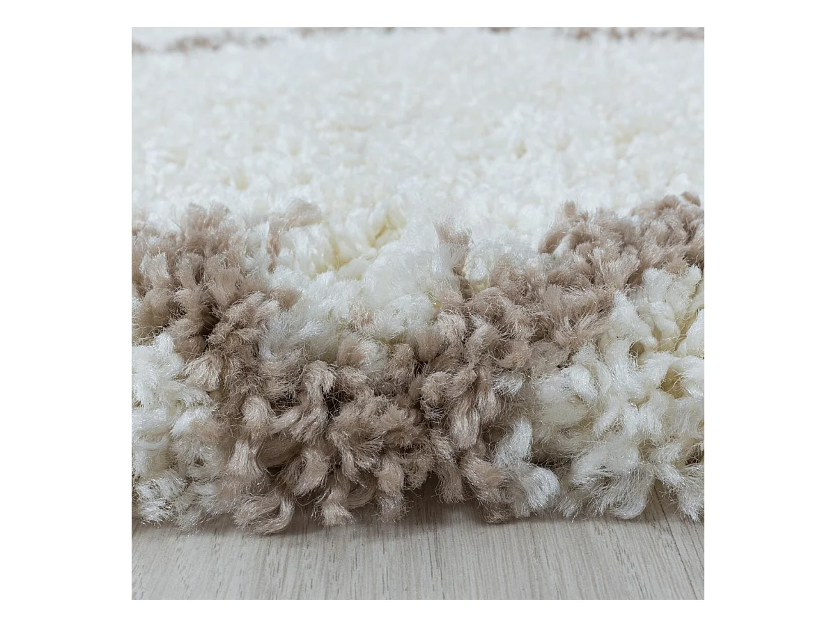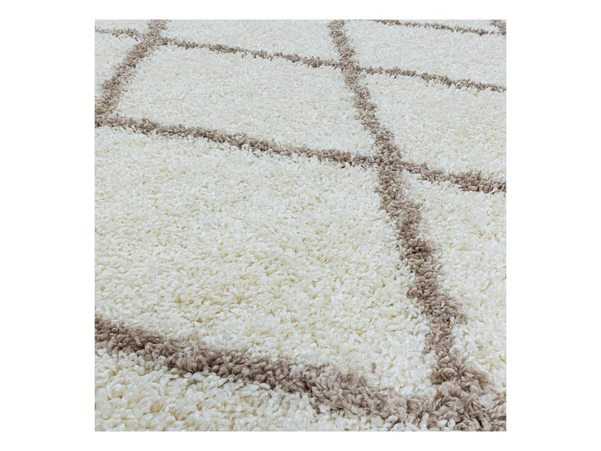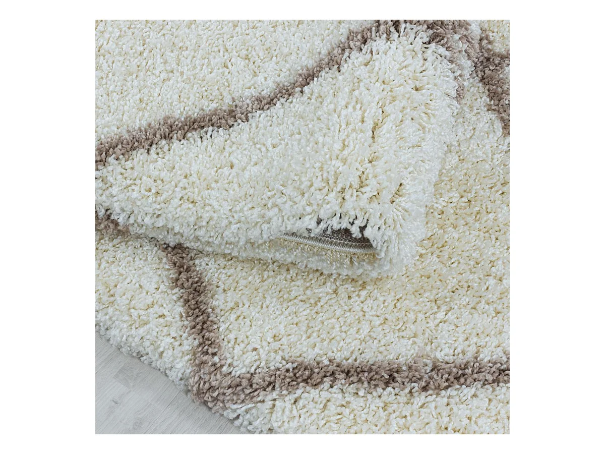 Tapis berbère rond Ø120cm tissé motif losange SHAGGY A crème