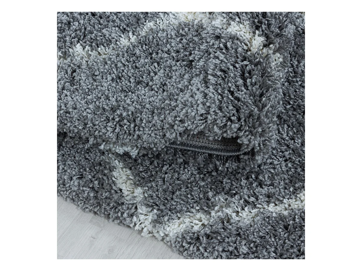 Tapis berbère rond Ø120cm tissé motif losange SHAGGY A gris