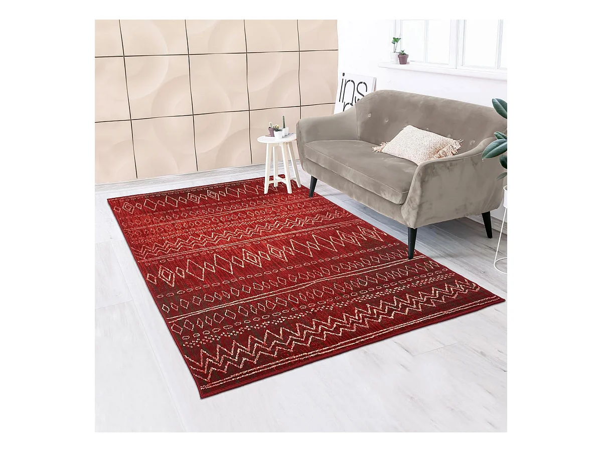Tapis berbère 120x170 tissé motif ethnic LYN1 CHILA rouge
