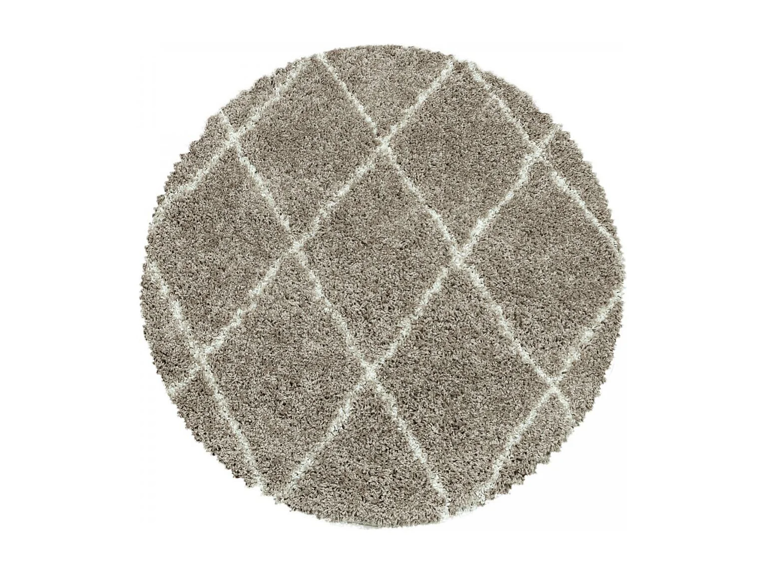 Tapis berbère rond Ø160cm tissé motif losange SHAGGY A beige