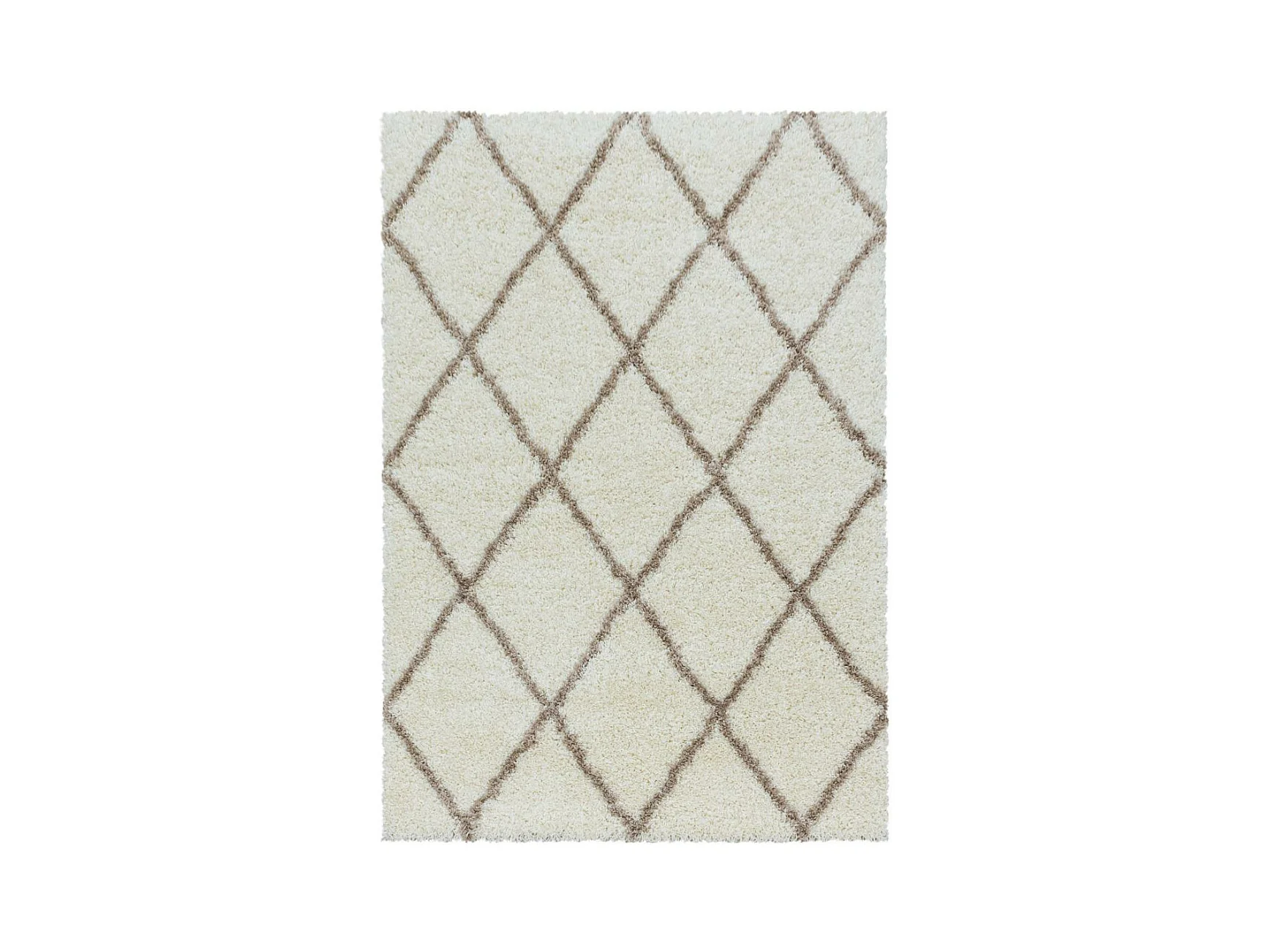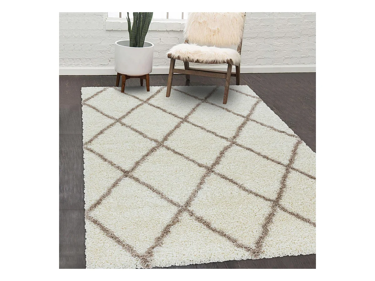 Tapis berbère rond Ø160cm tissé motif losange SHAGGY A crème