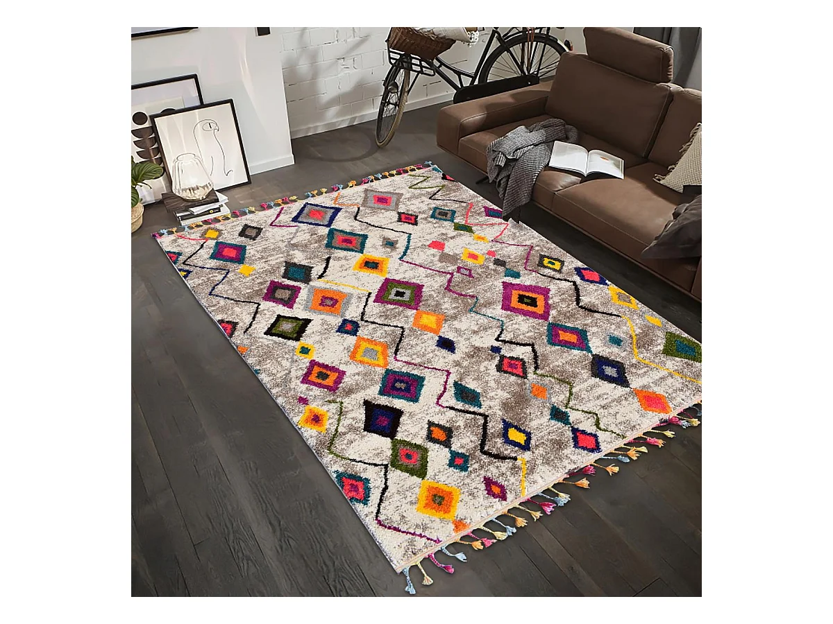 Tapis berbère 160x230 tissé motif ethnic LYN5 ESSARO gris et rouge