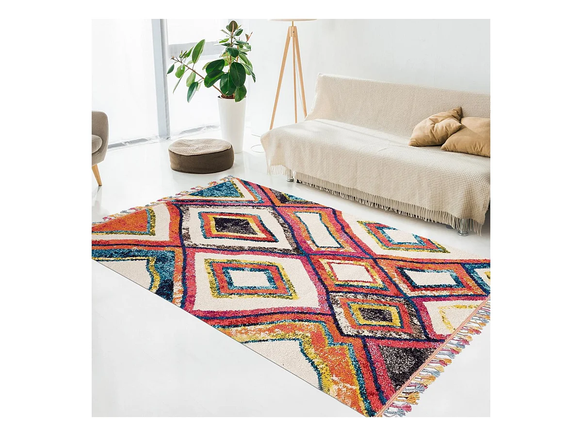 Tapis berbère 200x290 tissé motif ethnic LYN5 OURIKA violet
