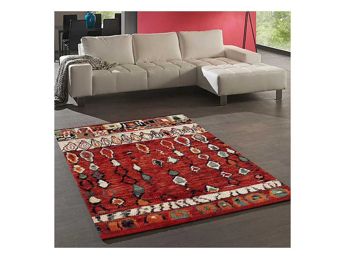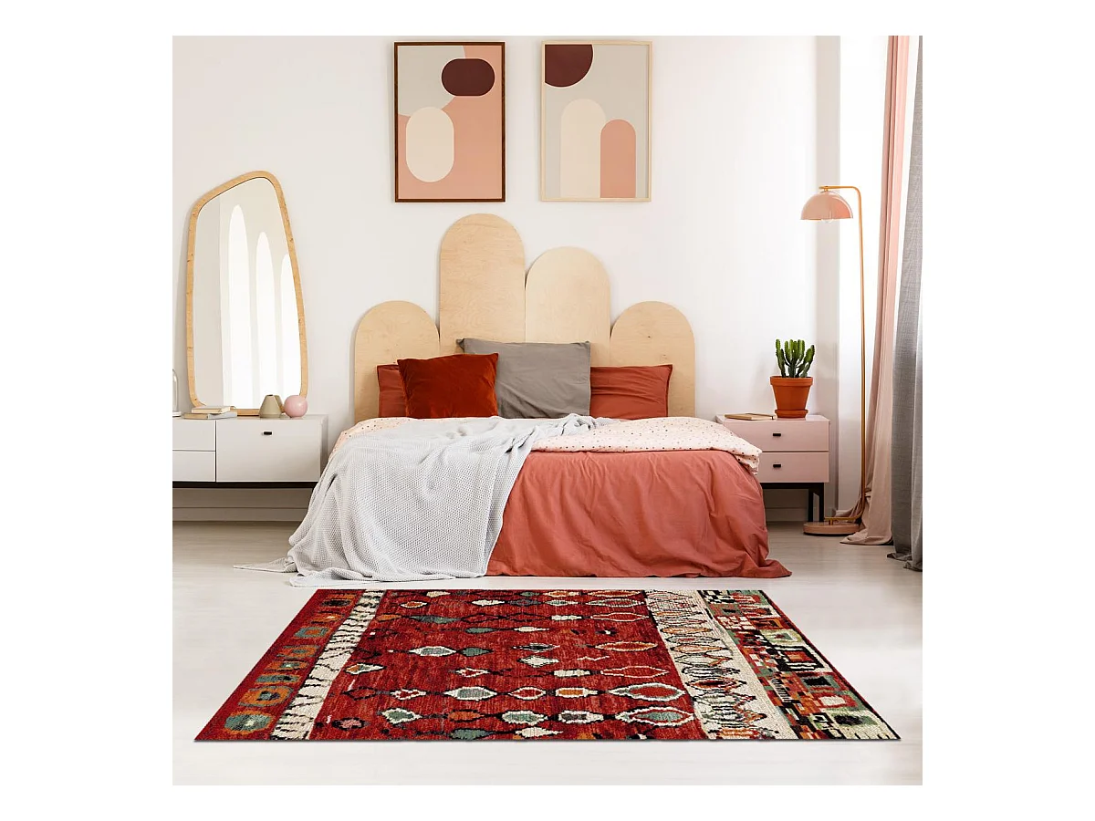 Tapis berbère 280x380 tissé motifs tribaux LYN8 MOROCO rouge