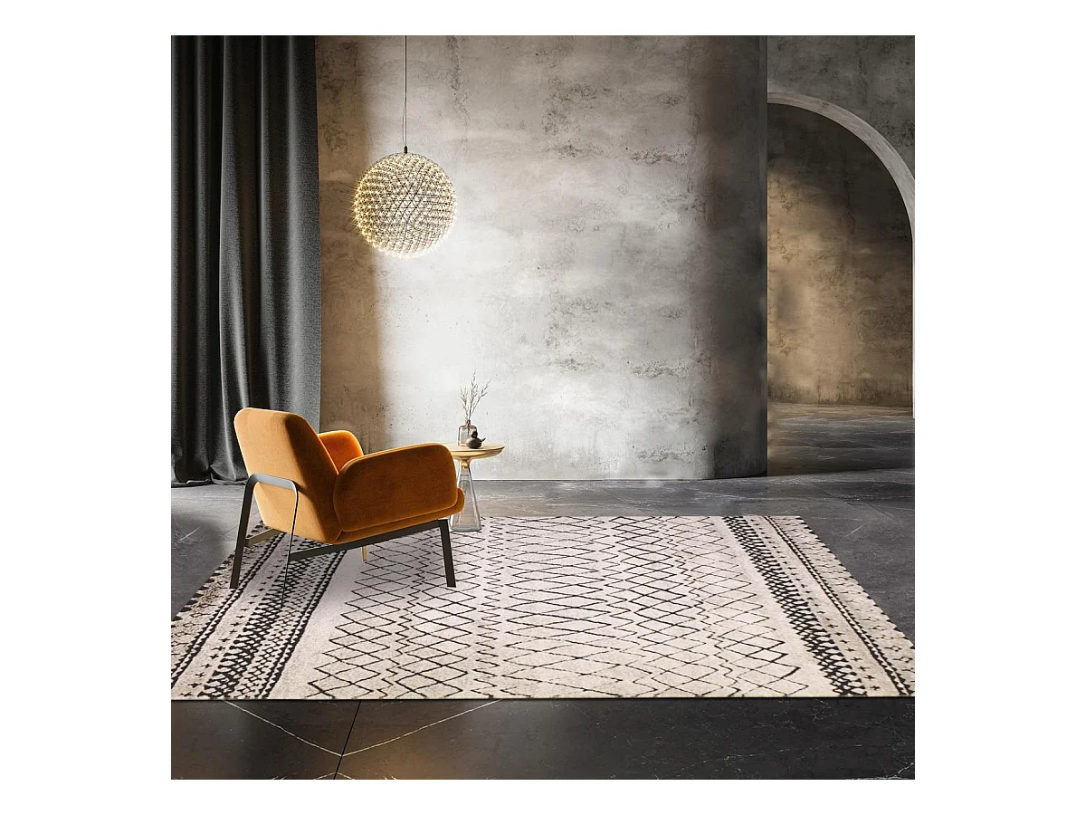 tapis chambre 60x110 tissé ivoire rectangle motif berbère LYN1 FEZA