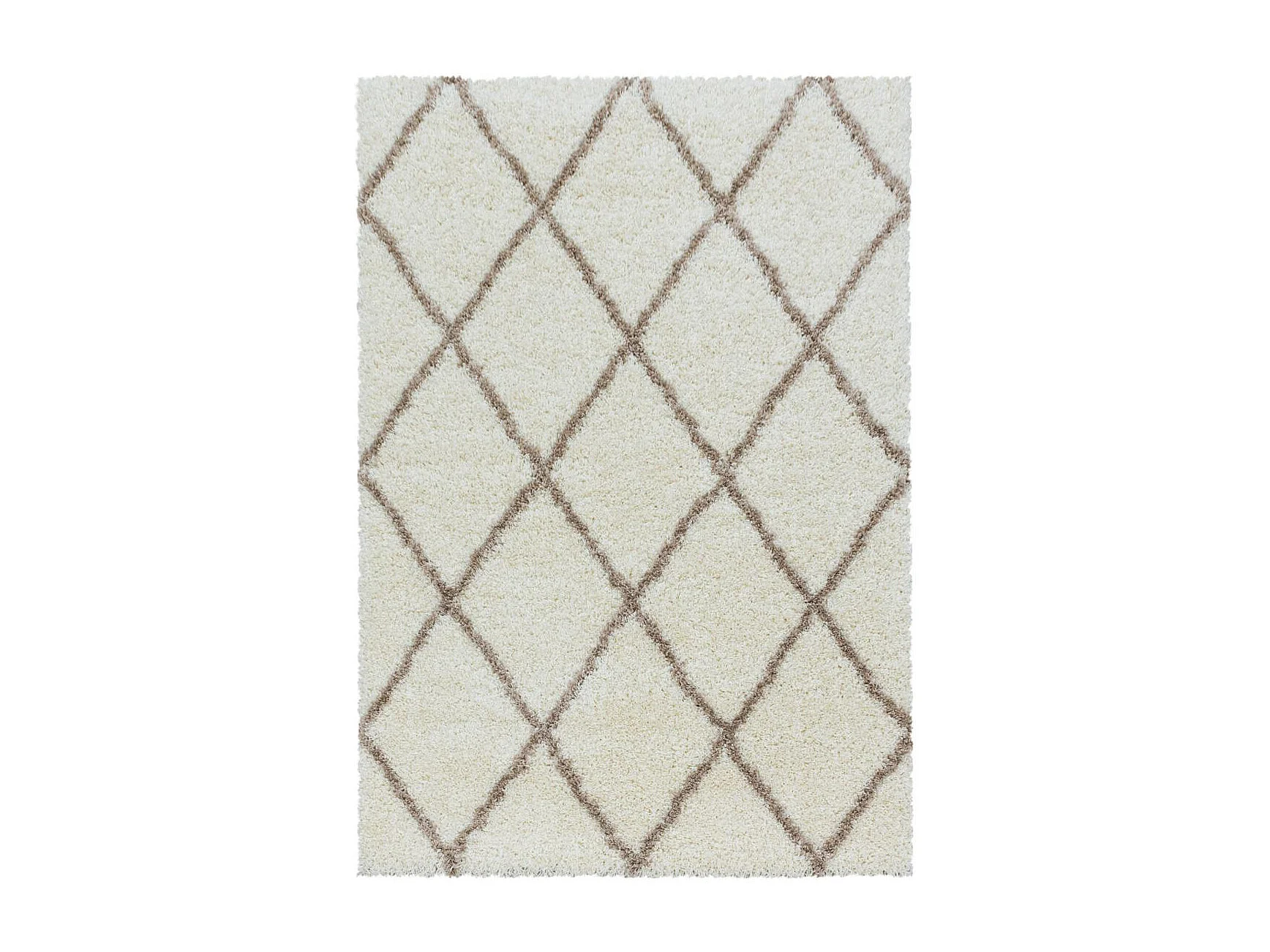 Tapis berbère 60x110 tissé motif losange SHAGGY A crème