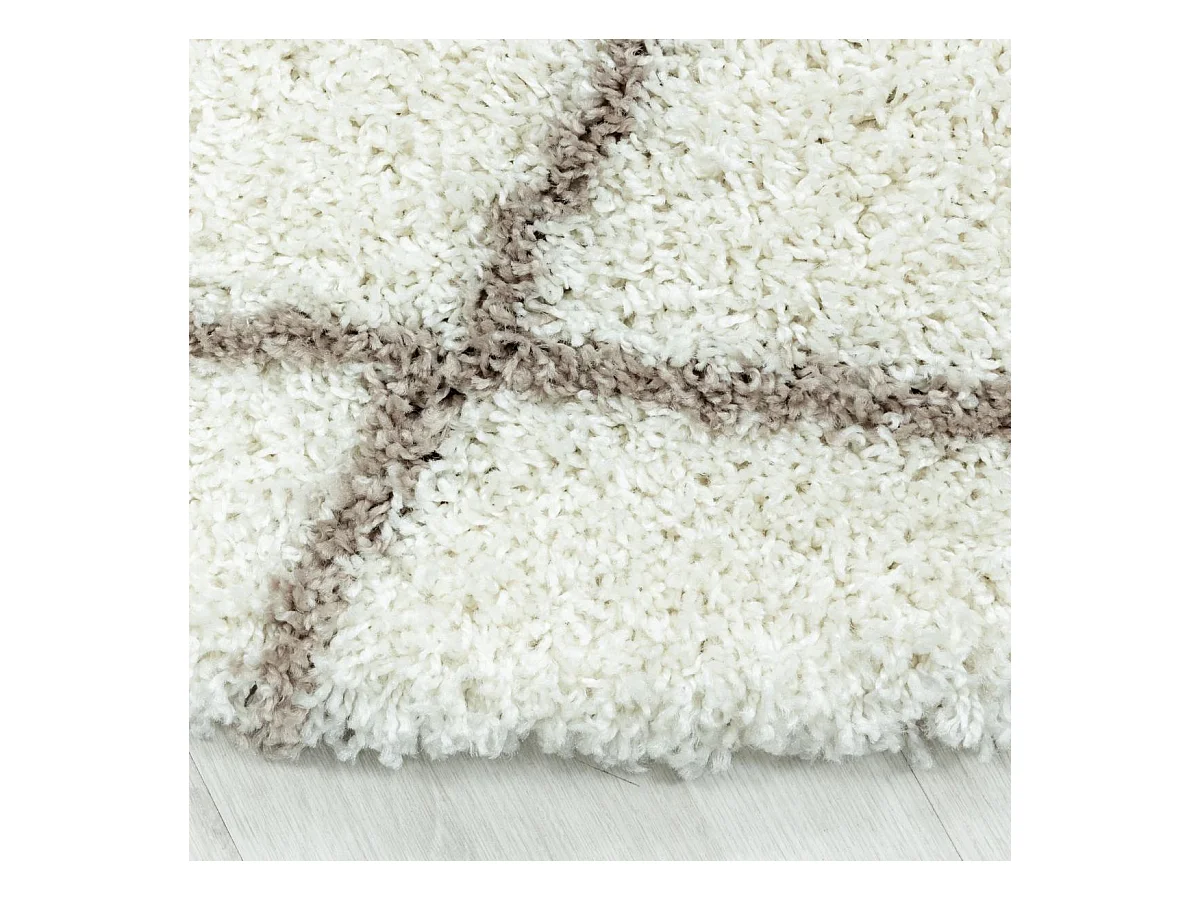 Tapis berbère rond Ø80cm tissé motif losange SHAGGY A crème