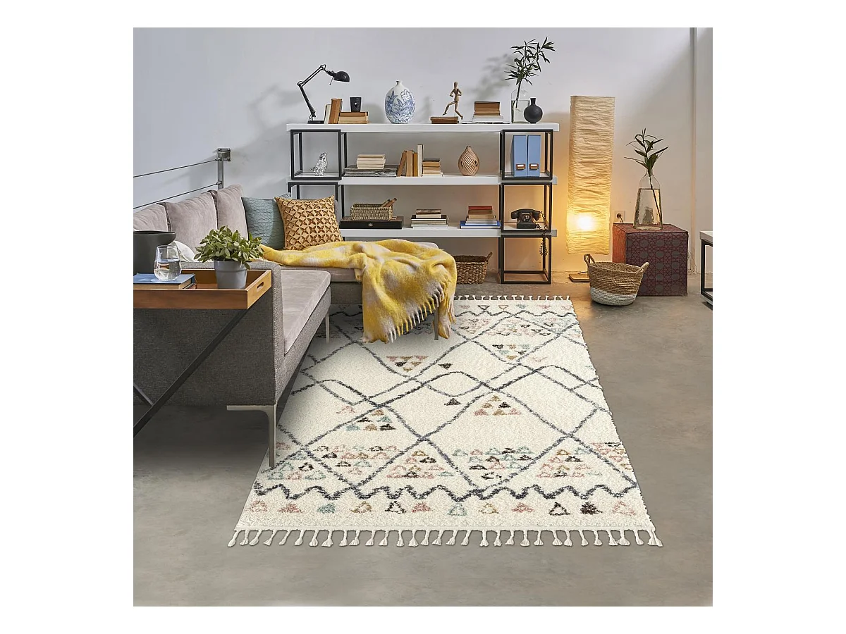 Tapis berbère 160x230 tissé motif saharien PASTEL D crème