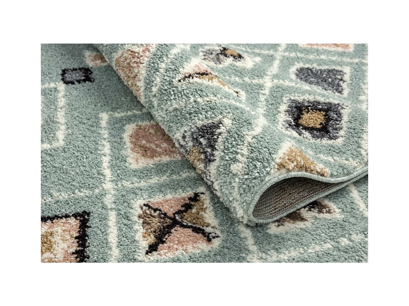 Tapis berbère 160x230 tissé motif saharien PASTEL E turquoise