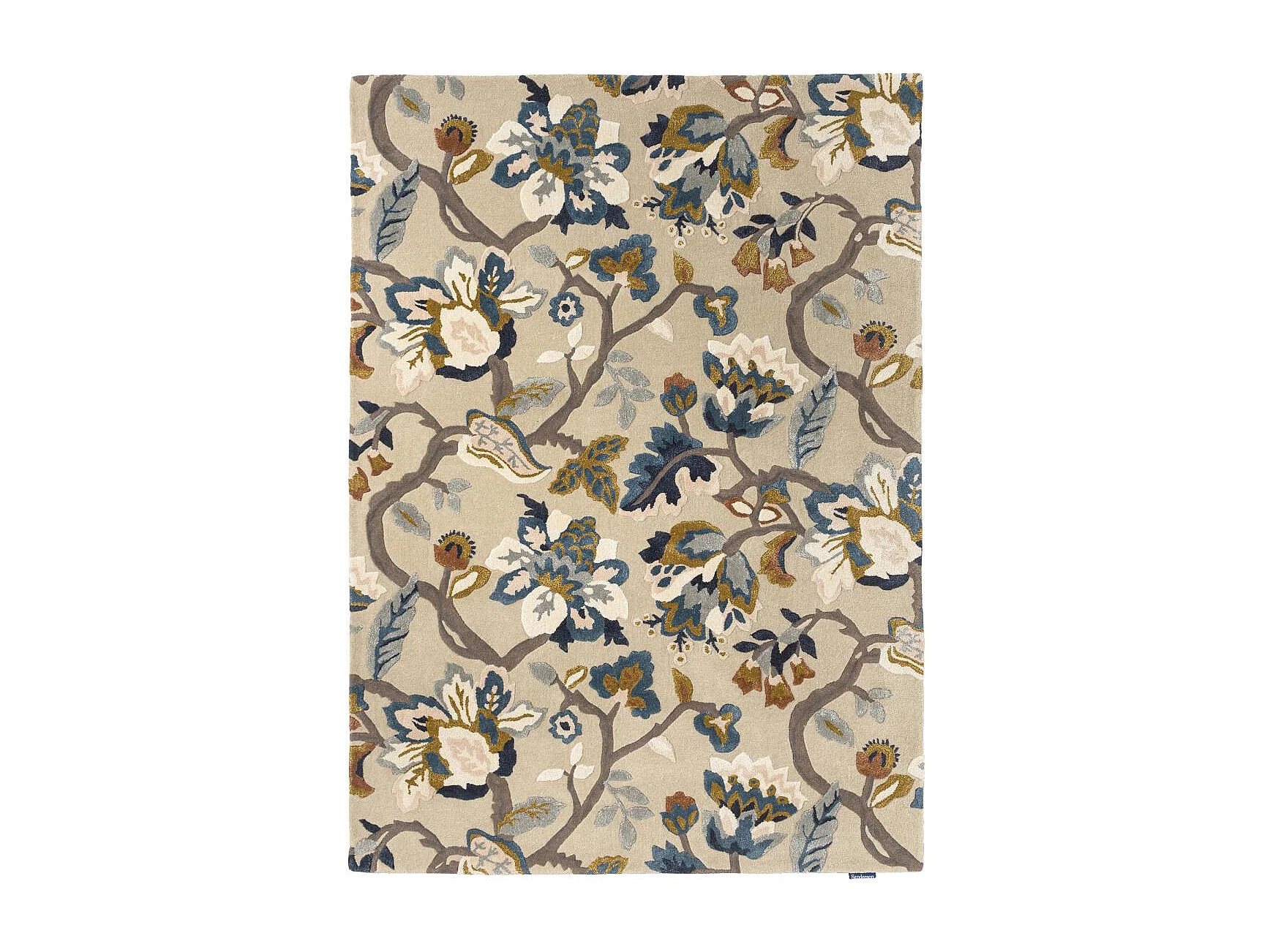 tapis bibliothèque 250x350 fait à la main en laine beige et bleu motif floral
