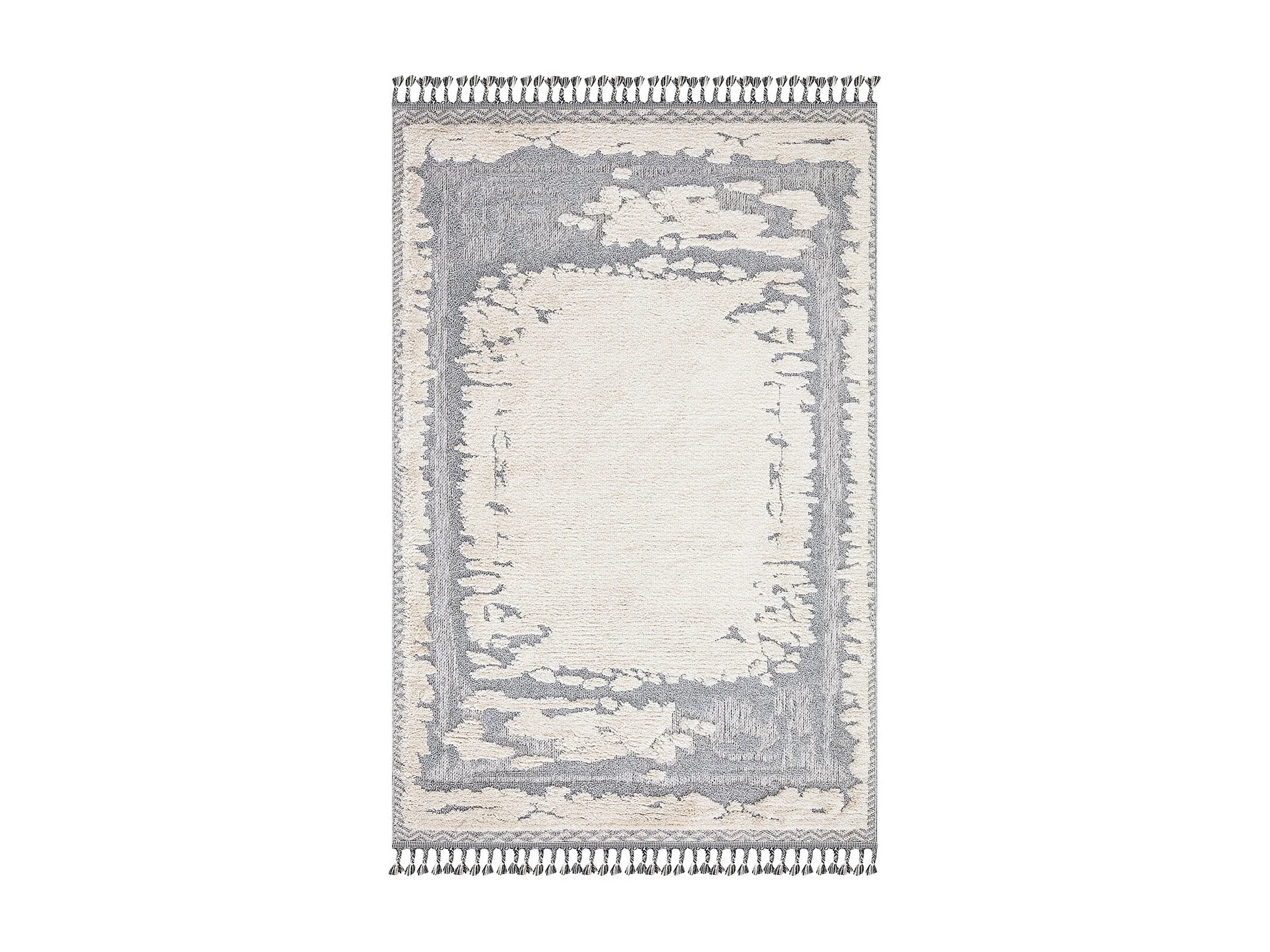 Tapis Boho Chic à franges tressées Crème/Gris/Bleu 160x230cm
