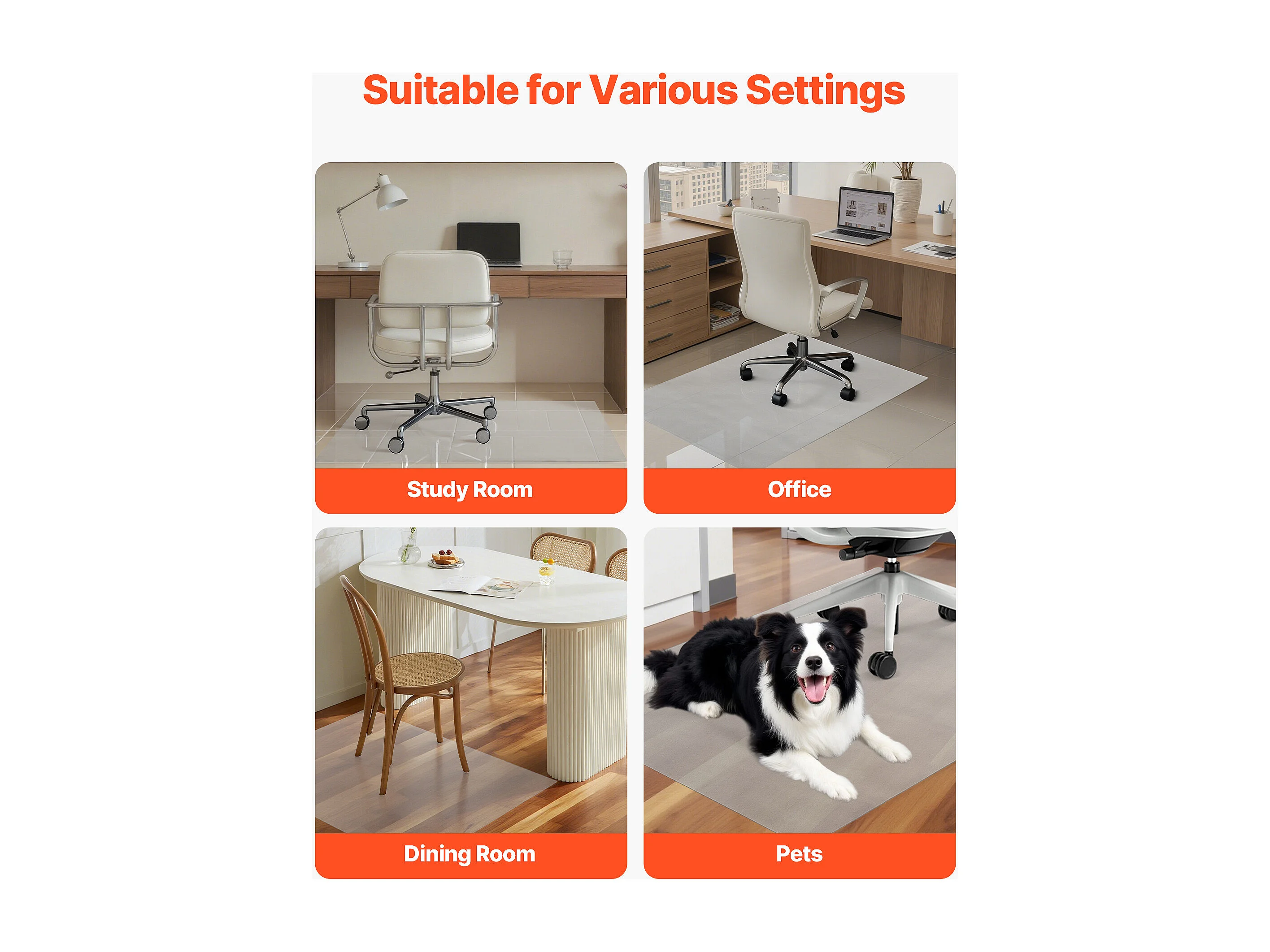 Tapis Chaise de Bureau SucceBuy Transparent de 121,9x91,4 cm, Tapis de Protection pour Chaises sur Roulettes, Protège-sol Dur Rectangulaire, pour Maison Bureau