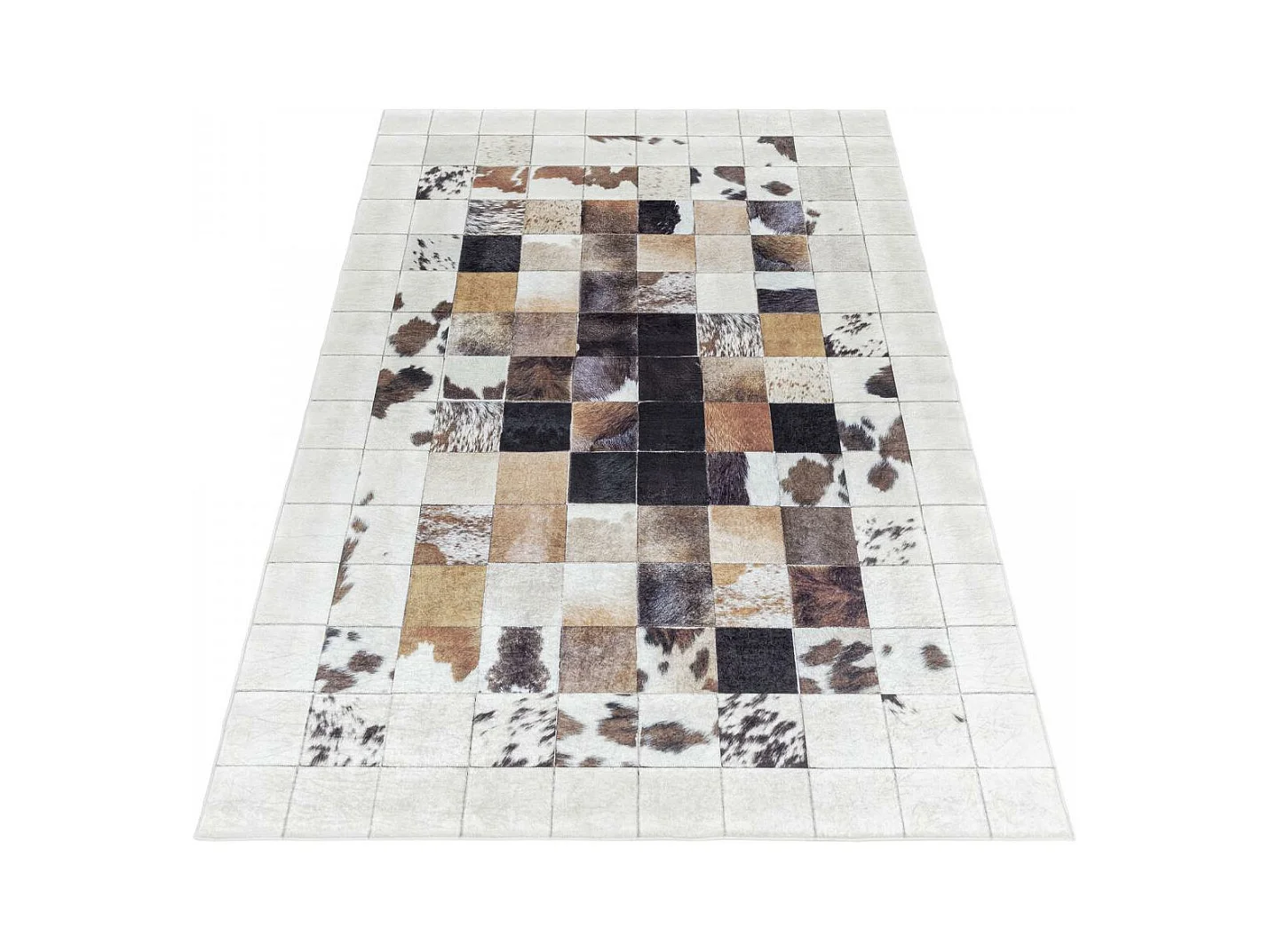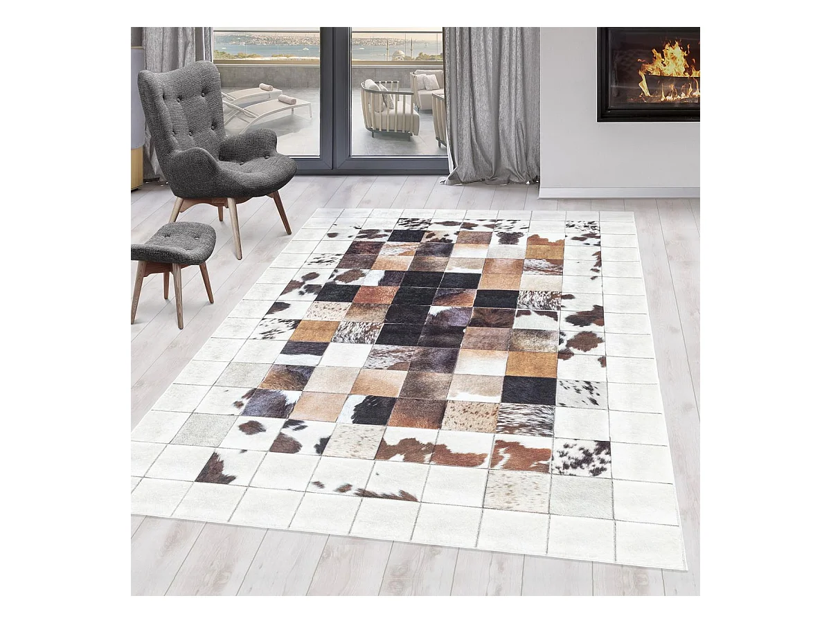 tapis chambre 120x170 tissé crème et noir rectangle motif animaux HUSLIO