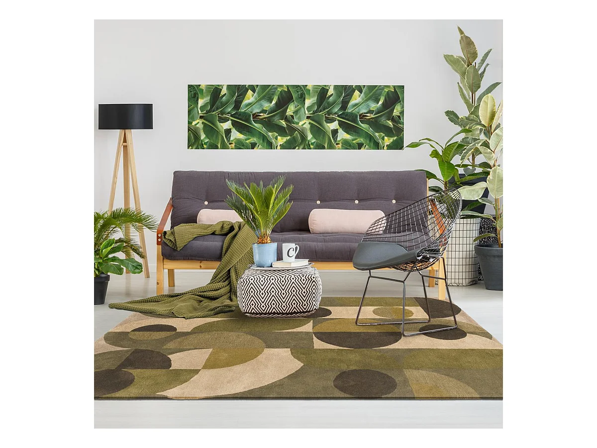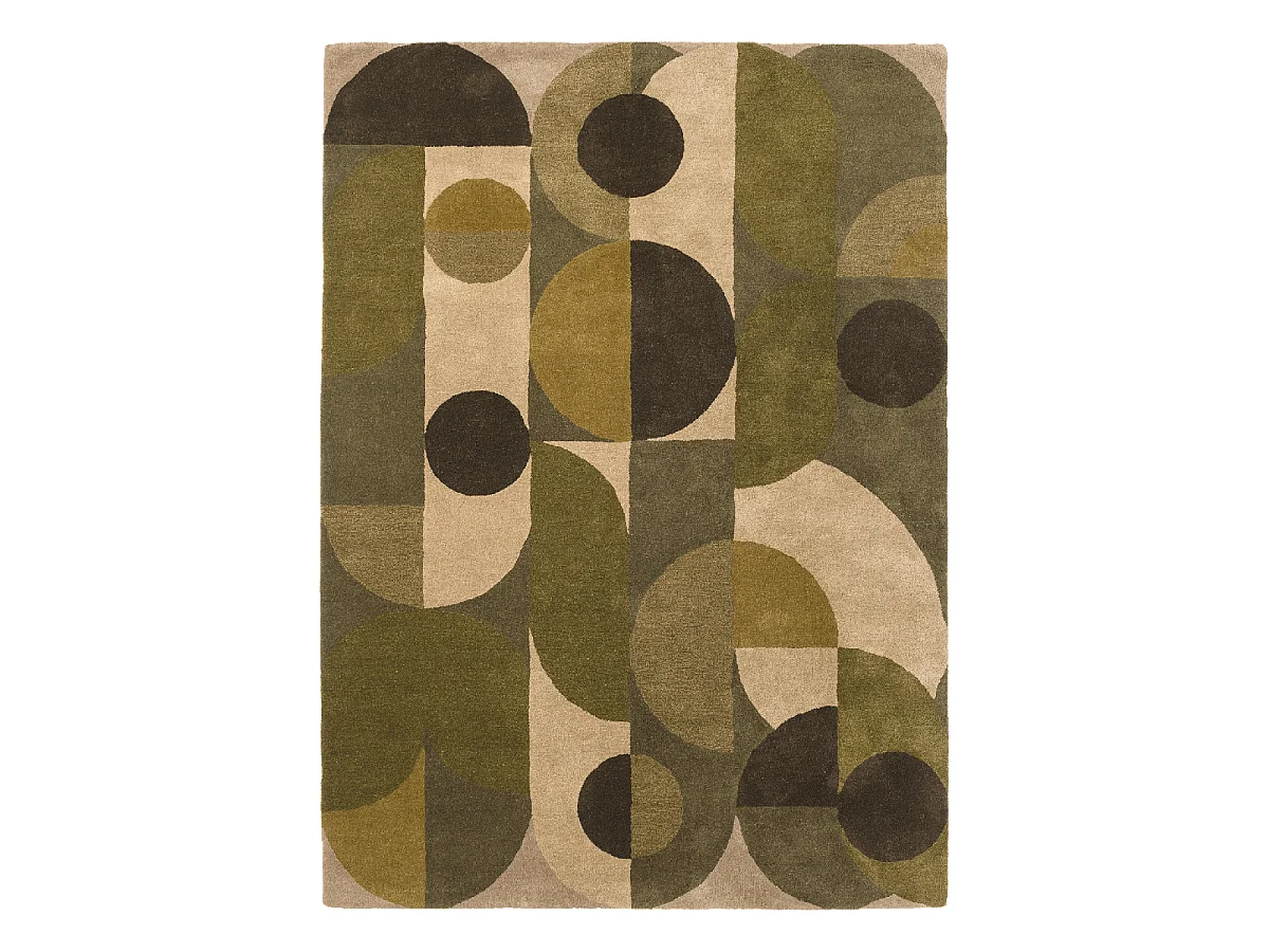 tapis chambre 160x230 fait à la main en laine vert et beige motif seventies