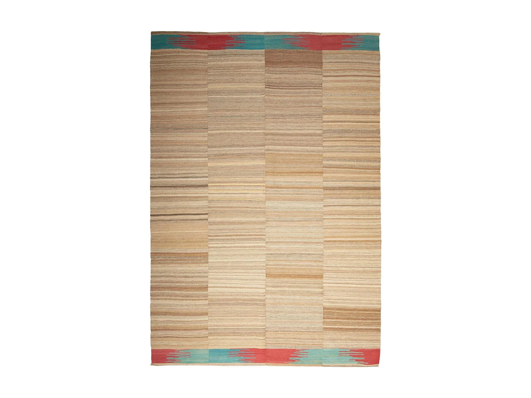 Authentique tapis d'Orient 223x322 kilim fait main en laine marron et rouge M
