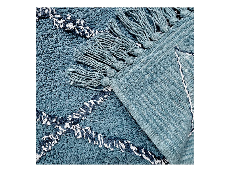 Tapis de bain 50 x 90 cm coton bleu style berbère à franges - FLUFFY