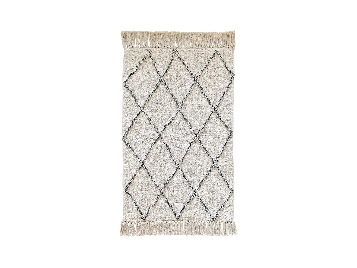 Tapis de bain 50 x 90 cm coton écru style berbère à franges - FLUFFY