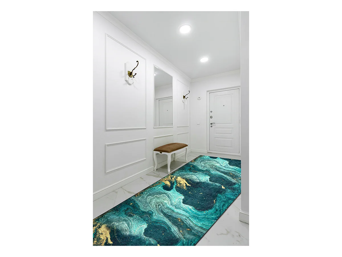TAPIS DE COULOIR antidérapant LOTUS SHADOWS 37750 Abstraction vert / 100x760 cm
