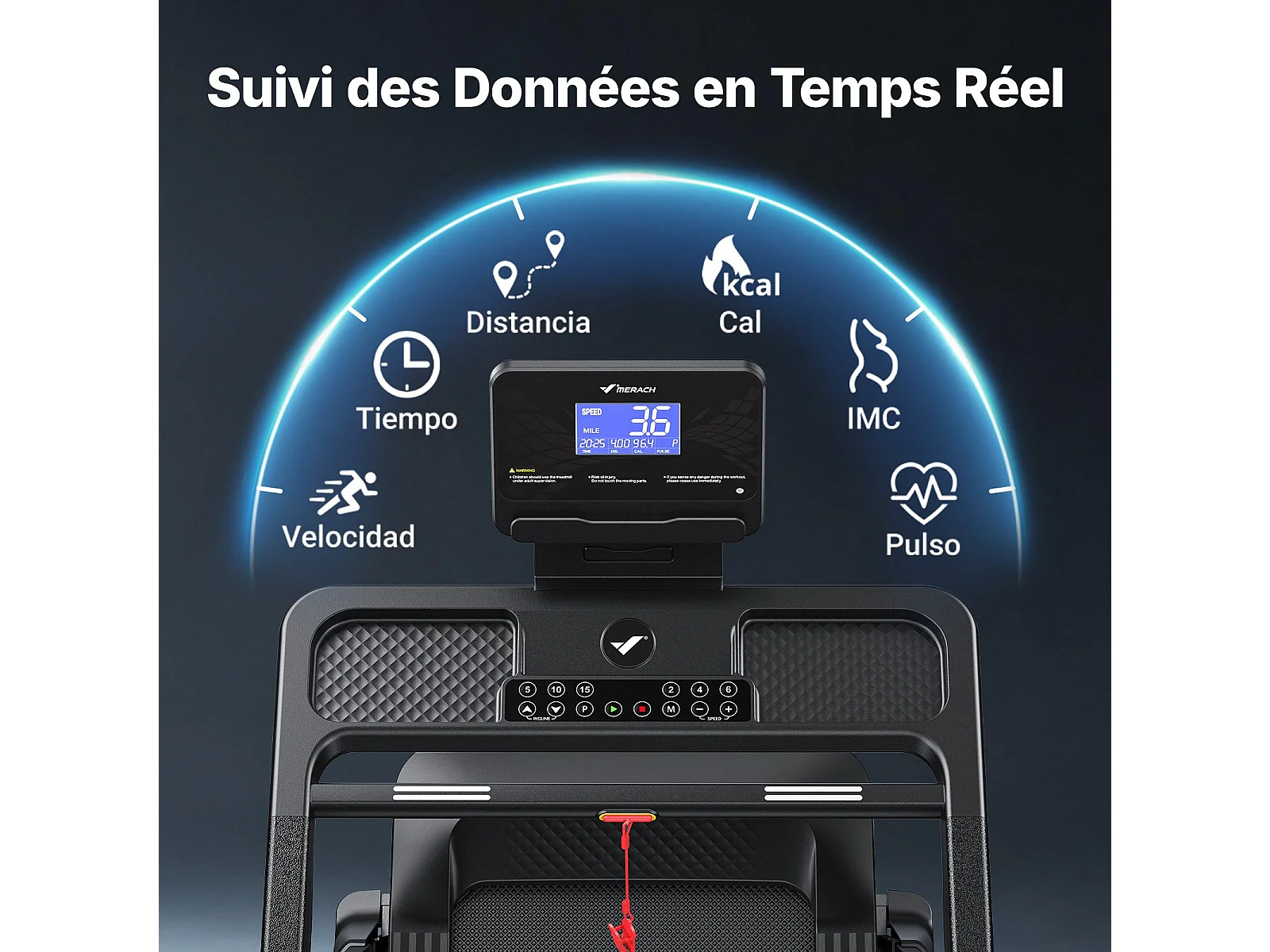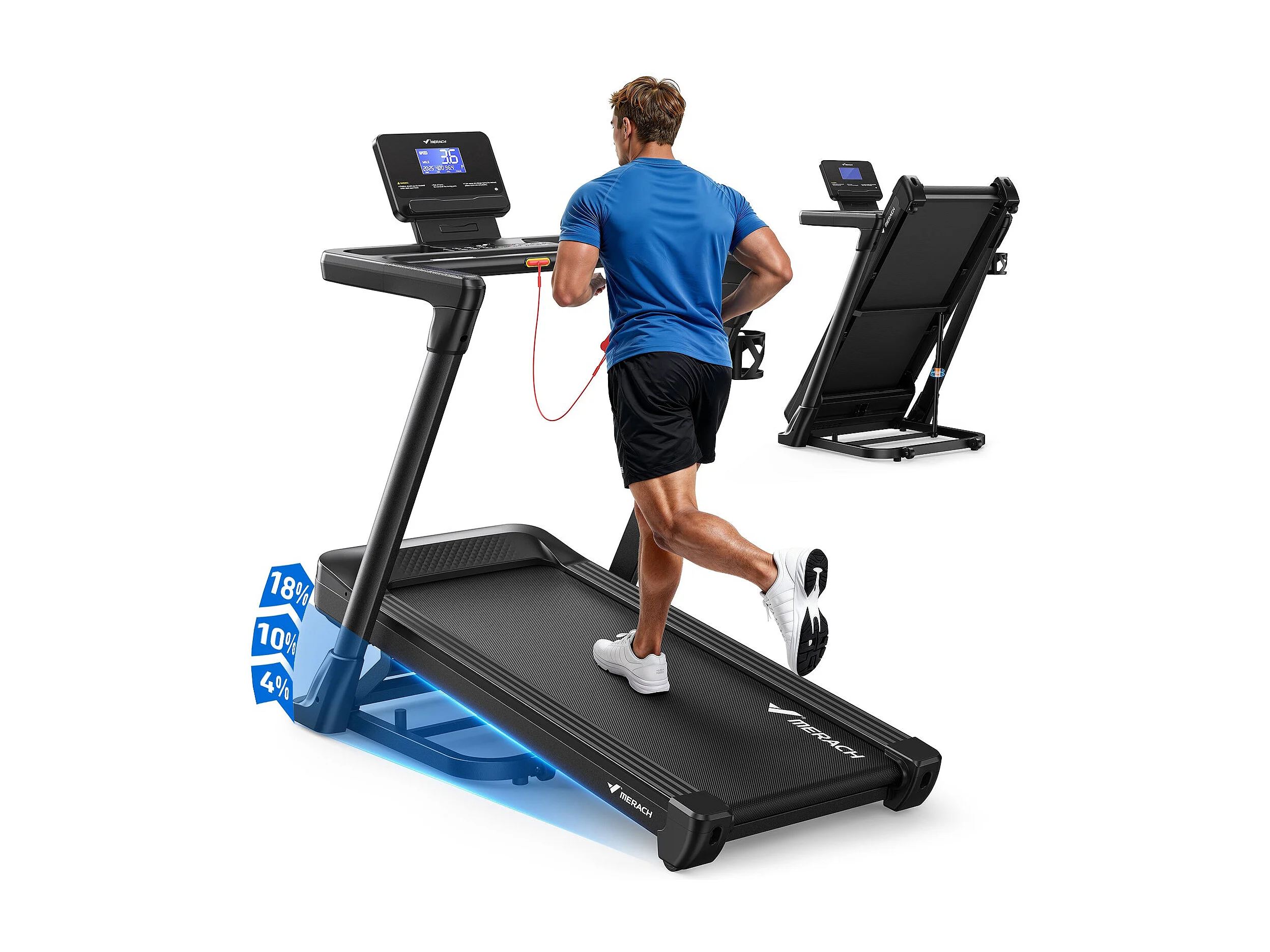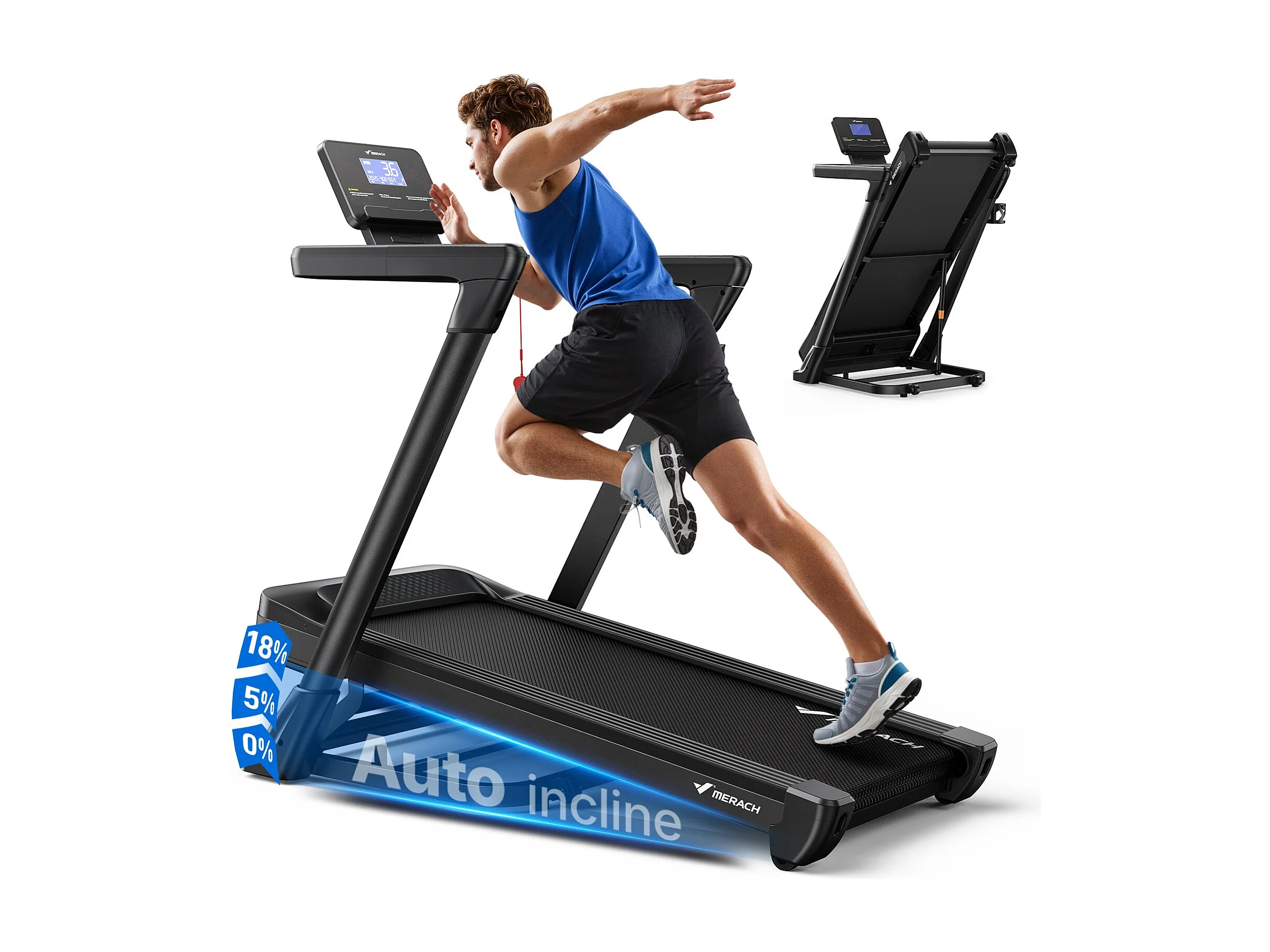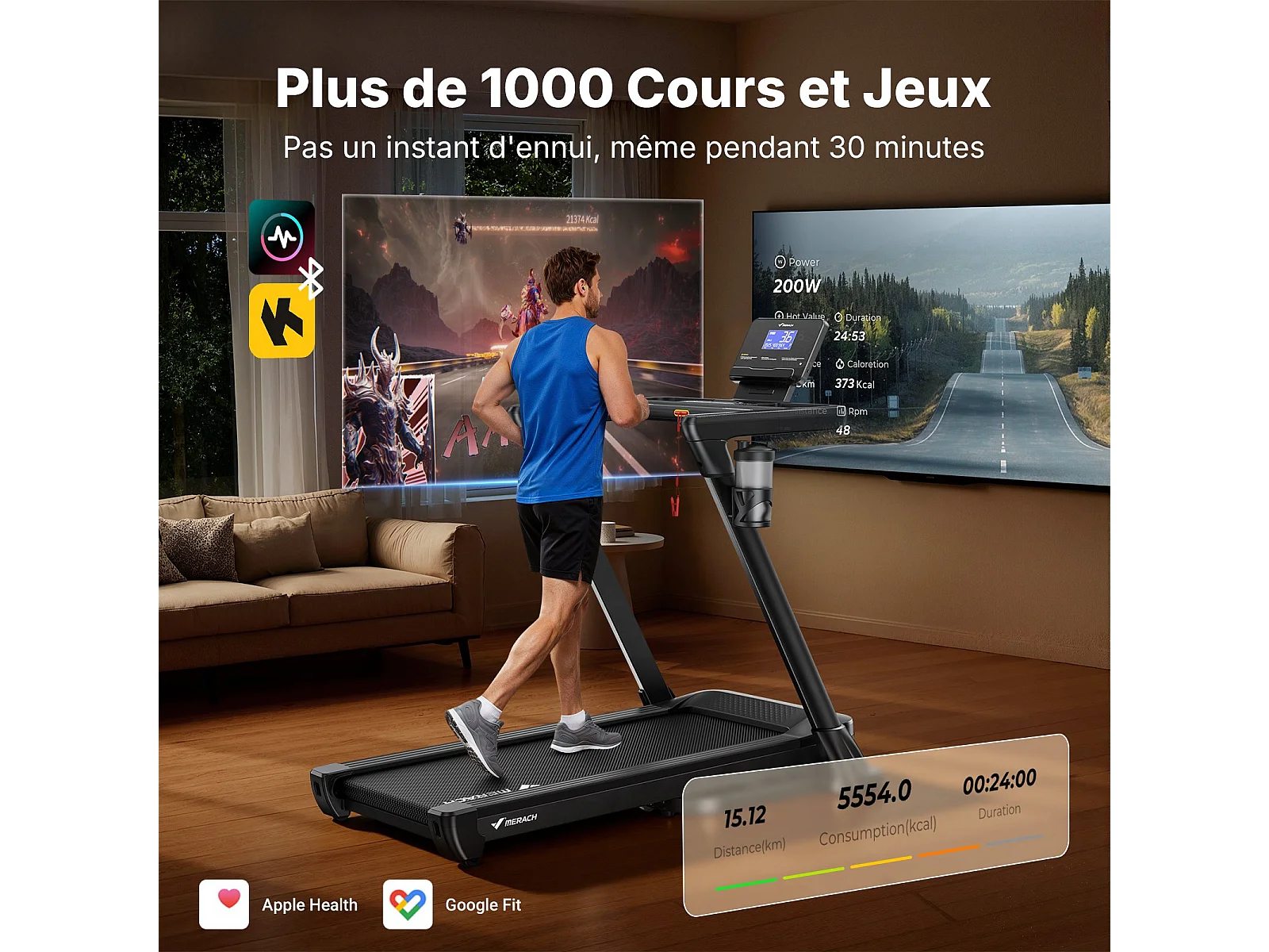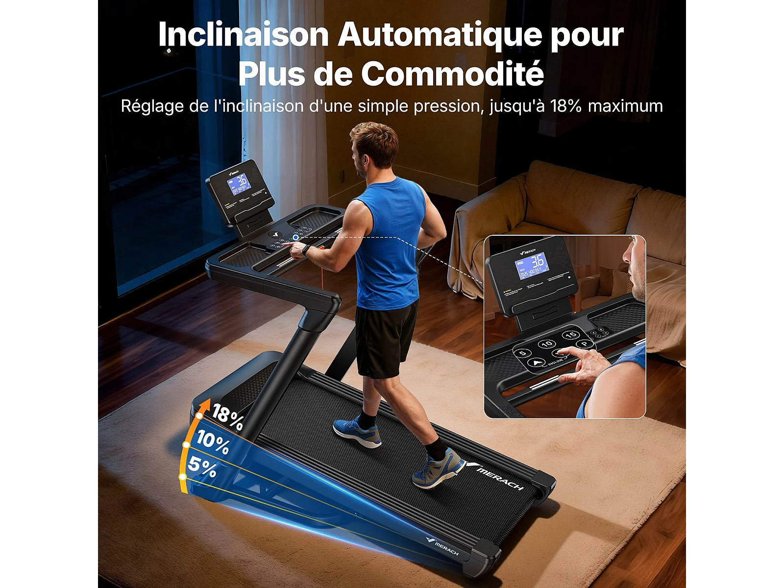 Tapis de Course MERACH, Bluetooth, LCD, Moteur Puissant, Inclinaison Automatique, Bande Silencieuse, 20 Programmes, Compatible Avec une Application