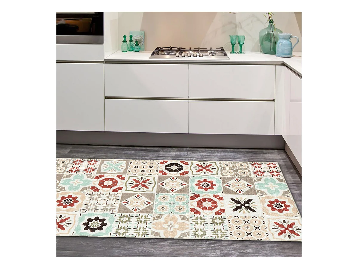 Tapis de cuisine 80x150 rouge et bleu , facile d'entretien LYN11 CAROMENT B