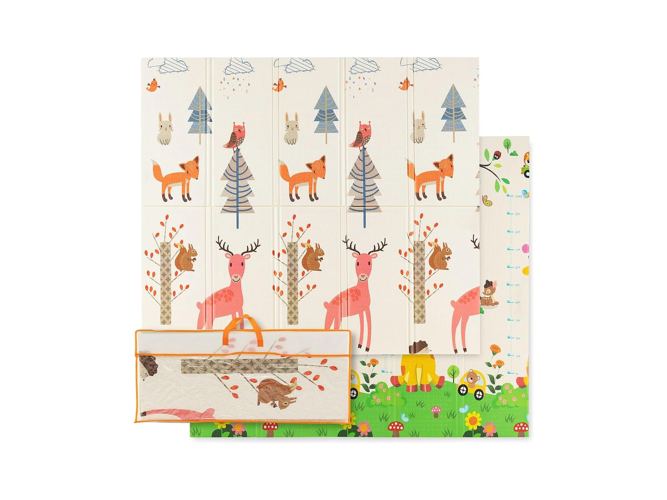Tapis de Jeu Bébé Pliable 200x180x1,4cm avec Sac de Transport, Tapis de Sol XXL en XPE Imperméable et Réversible avec Motif Girafe & Cerf, Tapis d'éveil Double Face