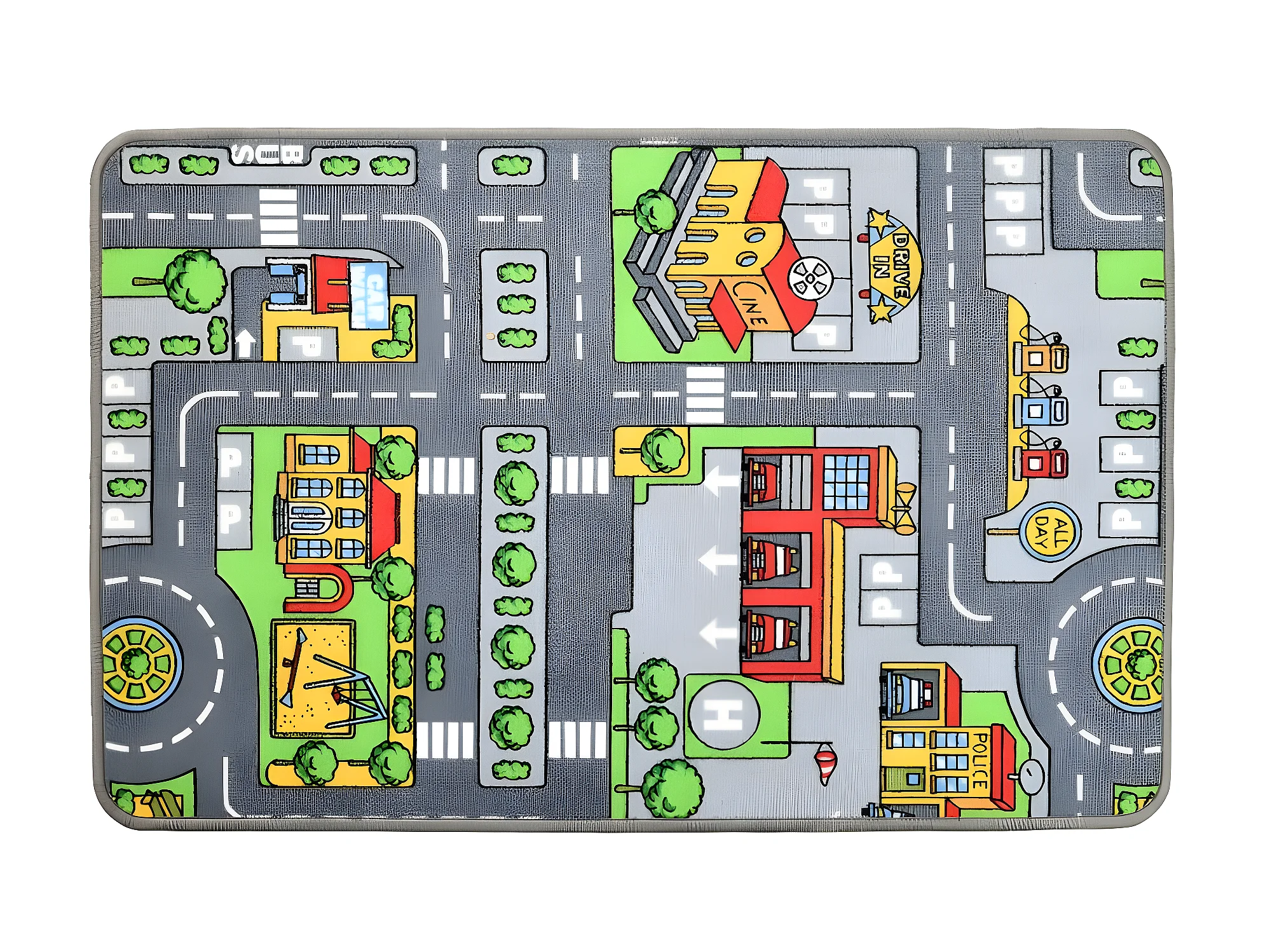Tapis de jeu - Circuit de voiture en ville - 100 x 67 cm