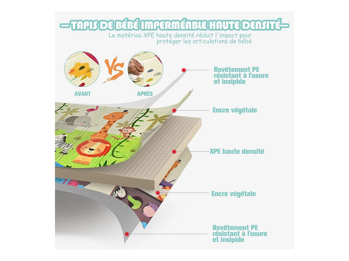Tapis de jeu pour bébé pliable 200x180x1,4cm avec image licorne en mousse xpe non toxique