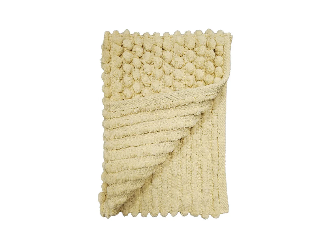 Tapis de salle de bain 40 x 60 cm pompon jaune clair - MARIE