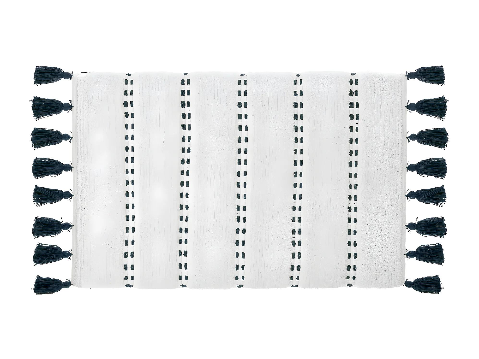 Tapis de Salle de Bain en Coton avec pompons Bleu pétrole 50 x 75 cm