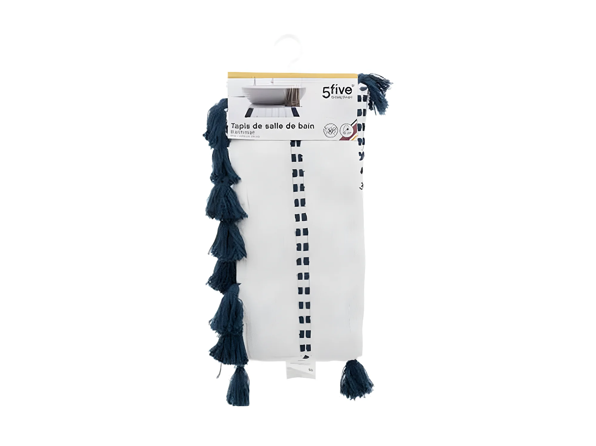 Tapis de bain 50 x 90 cm coton bleu style berbère à franges - FLUFFY