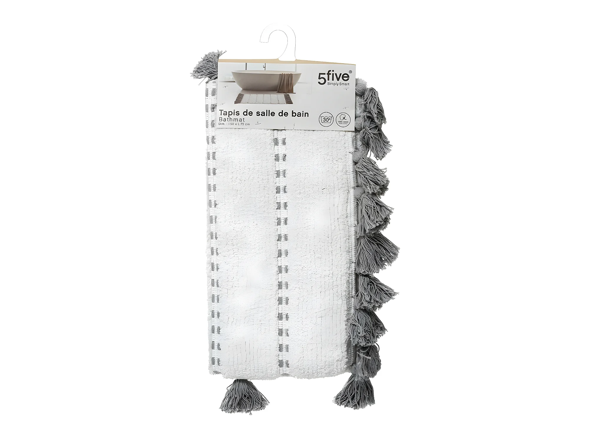 Tapis de Salle de Bain Gris en Coton avec pompons 50 x 75 cm