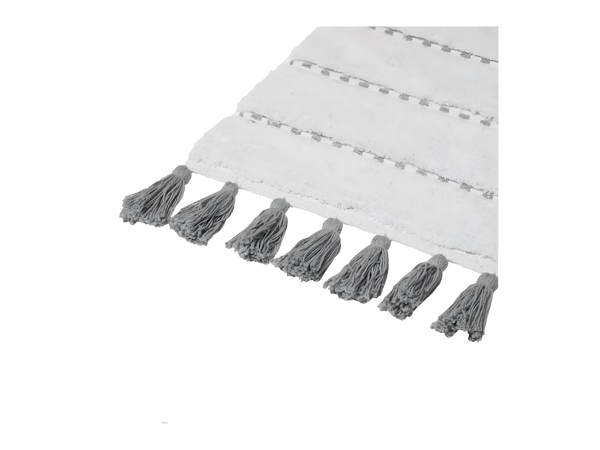 Tapis de bain 50 x 90 cm coton gris style berbère à franges - FLUFFY