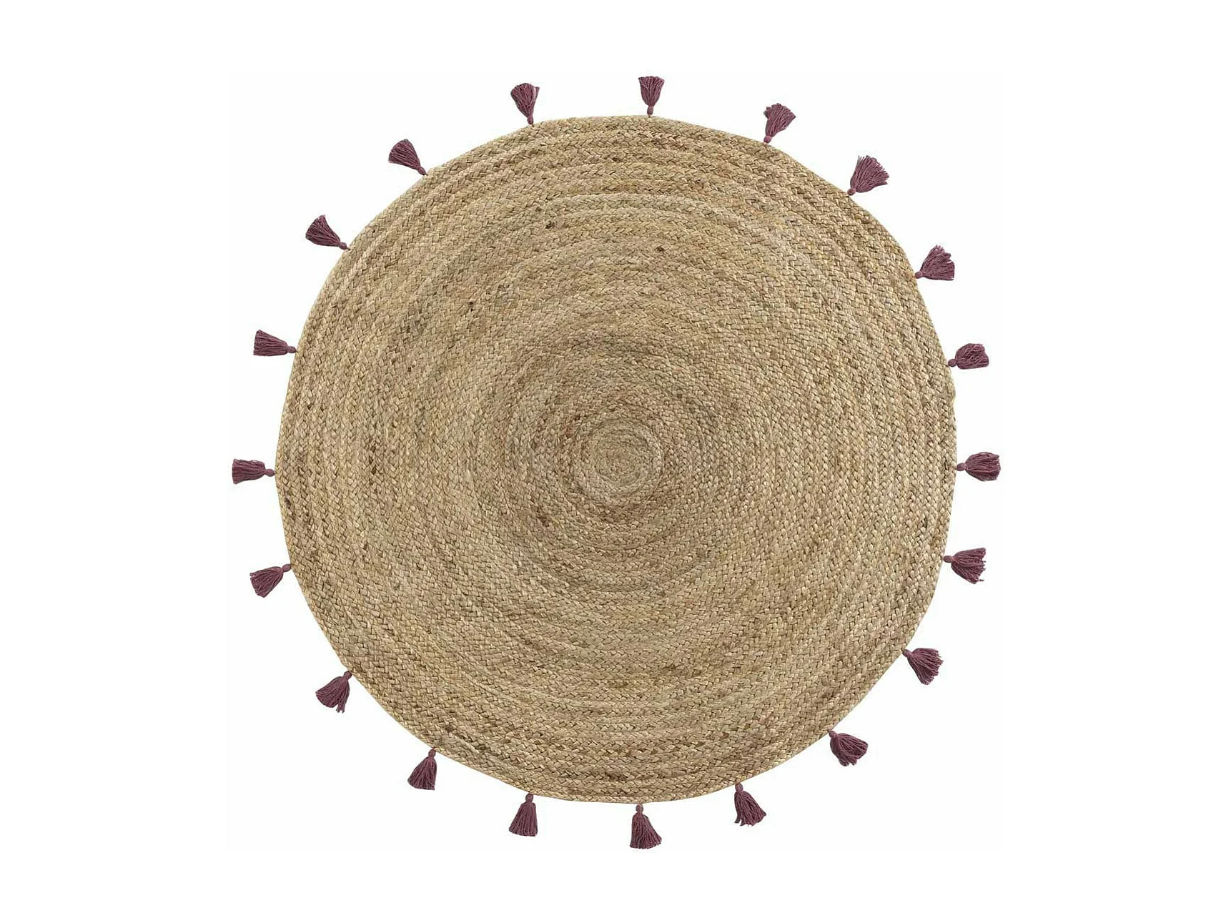Tapis Déco Rond en Jute "Shira" 120cm Bordeaux