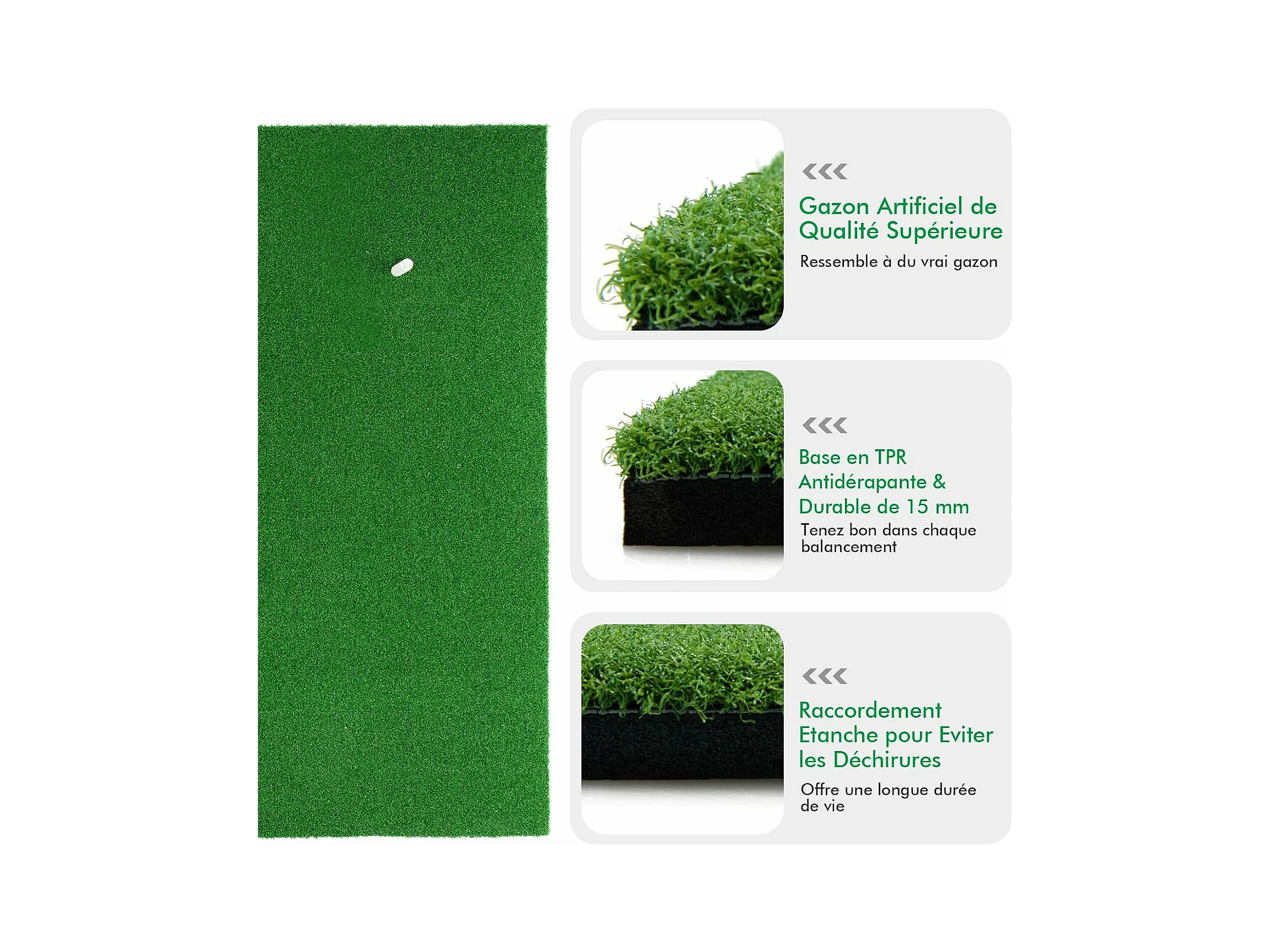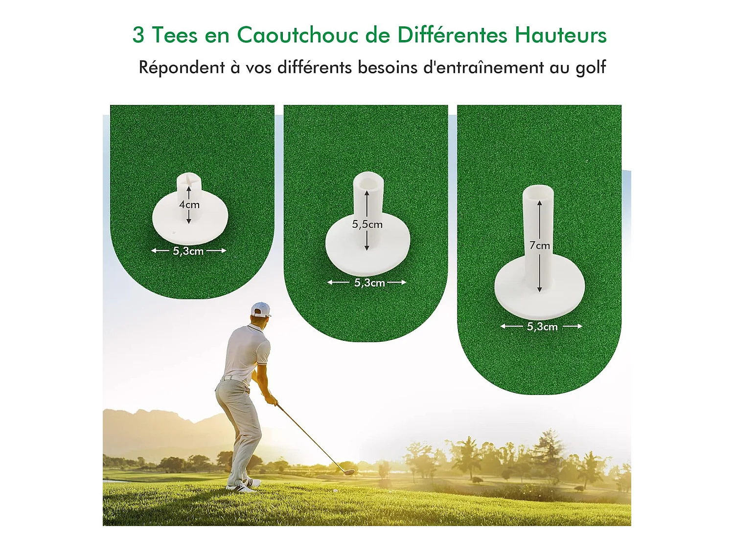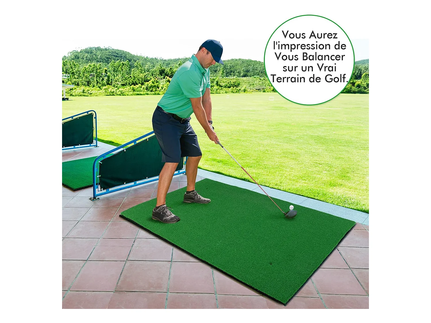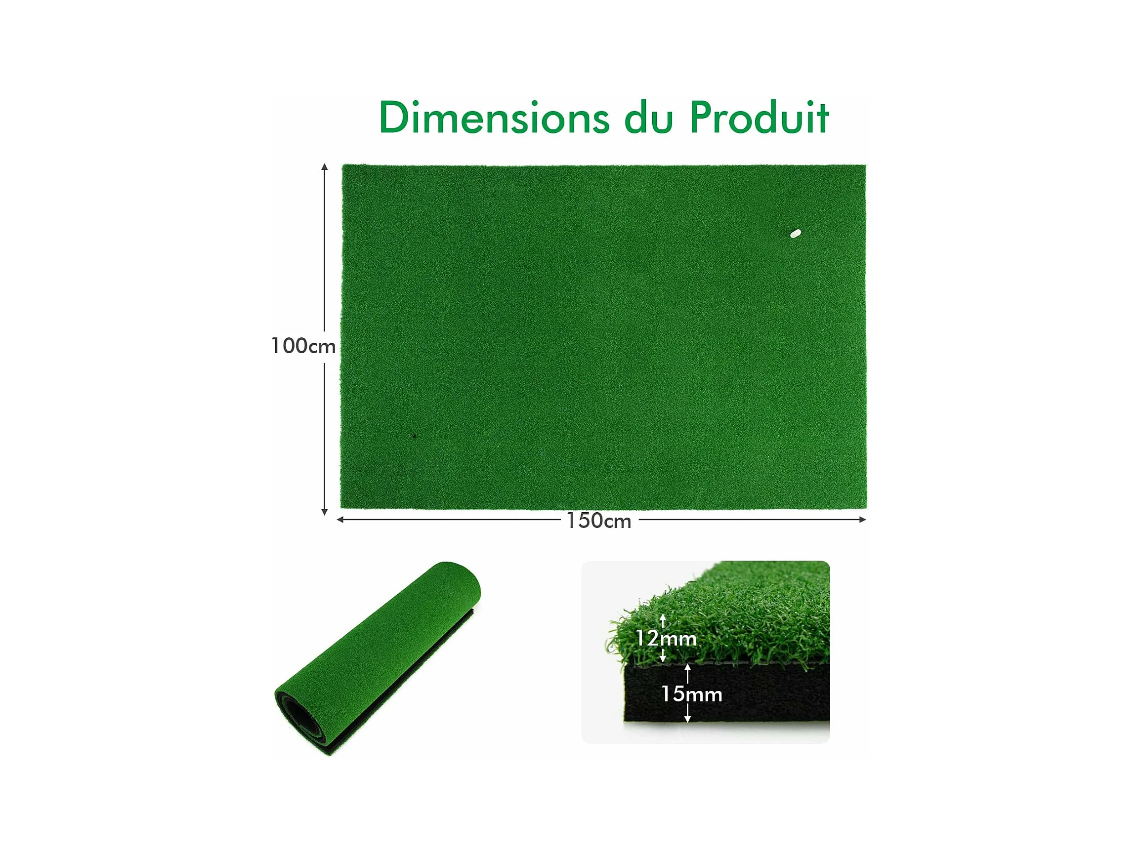 Tapis d'Entraînement de Golf/Tapis de Frappe de Golf, 1,5 x 1m, 2 Positions de Tee et 3 Tees en Caoutchouc Inclus, Utilisation Intérieure et Extérieure