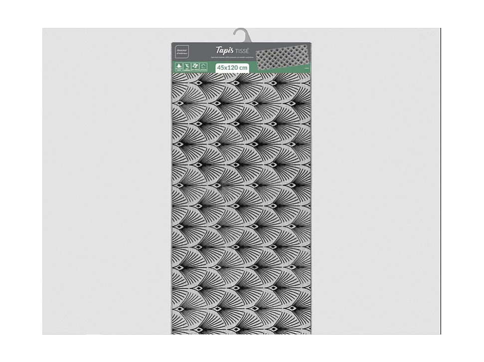Tapis Tissé Imprimé "Casella" 45x120cm Gris
