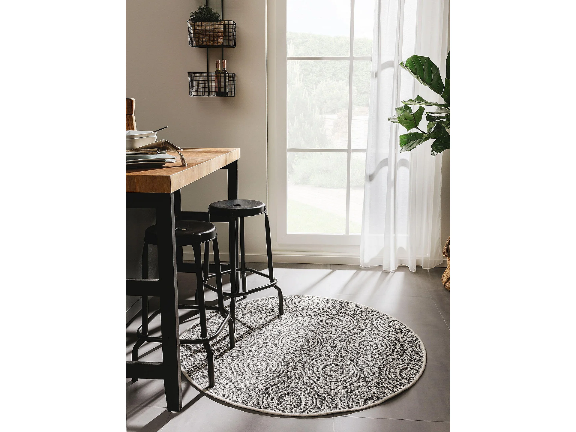 Tapis d'extérieur & intérieur rond Cleo Blanc & Noir ø 120 cm rond